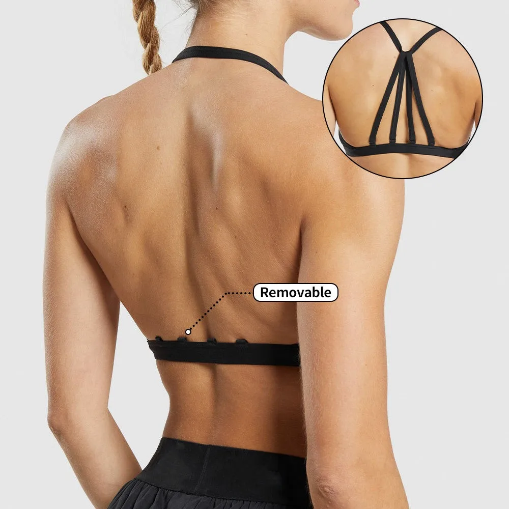 Factory OEM High Quality Gym Yoga Wear Quick Dry V Neck Yoga Bra Strappy Padded Spandex Cross Back Active Sport Bra for Women