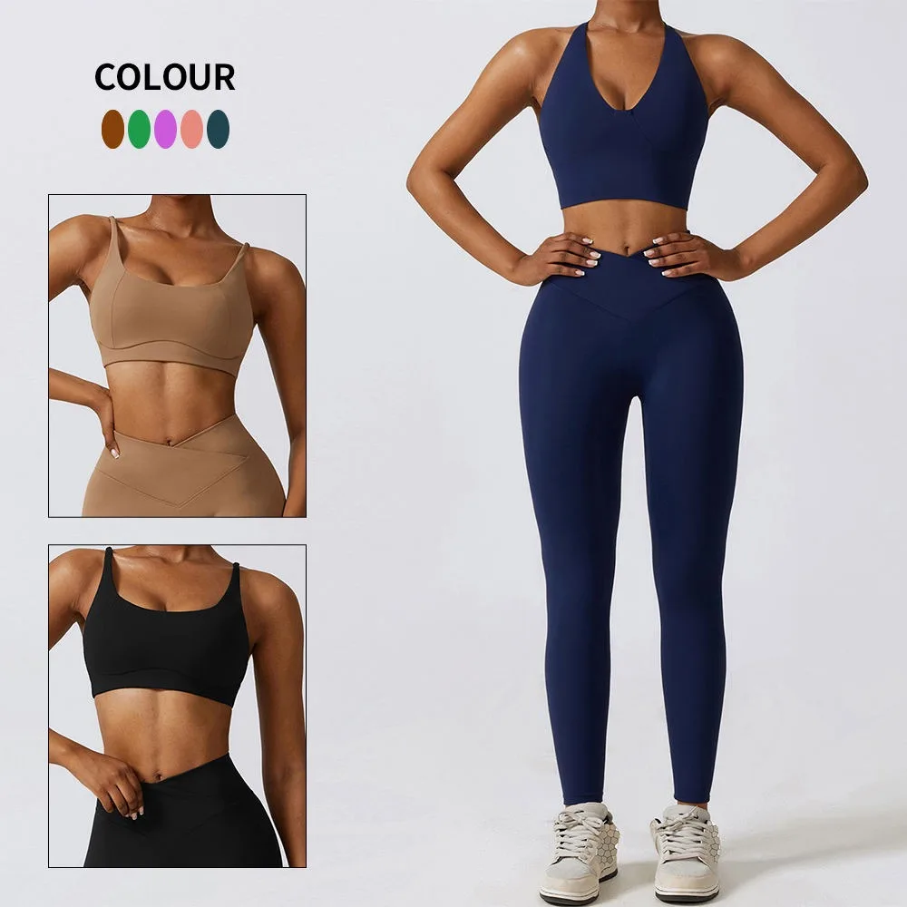 Workout Wholesale Custom logo Fitness Set Active Wear Women Gym Clothes Kit Sweat Suit Butt Lift Leggings 2 Piece Yoga Sets