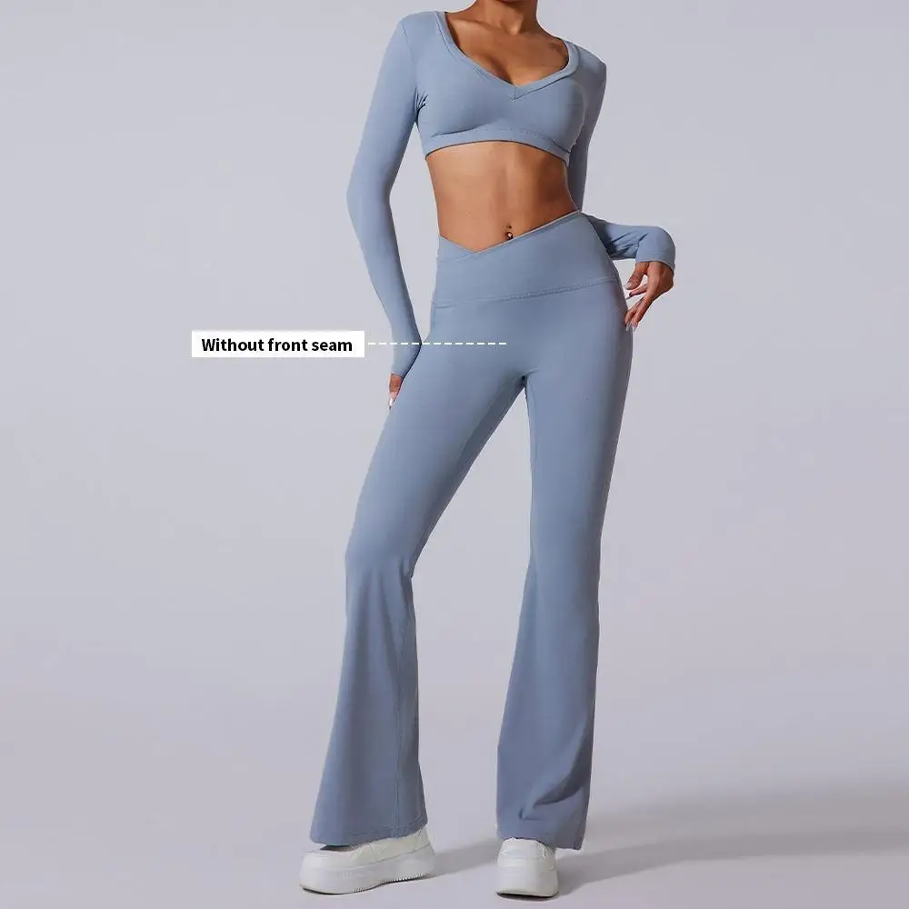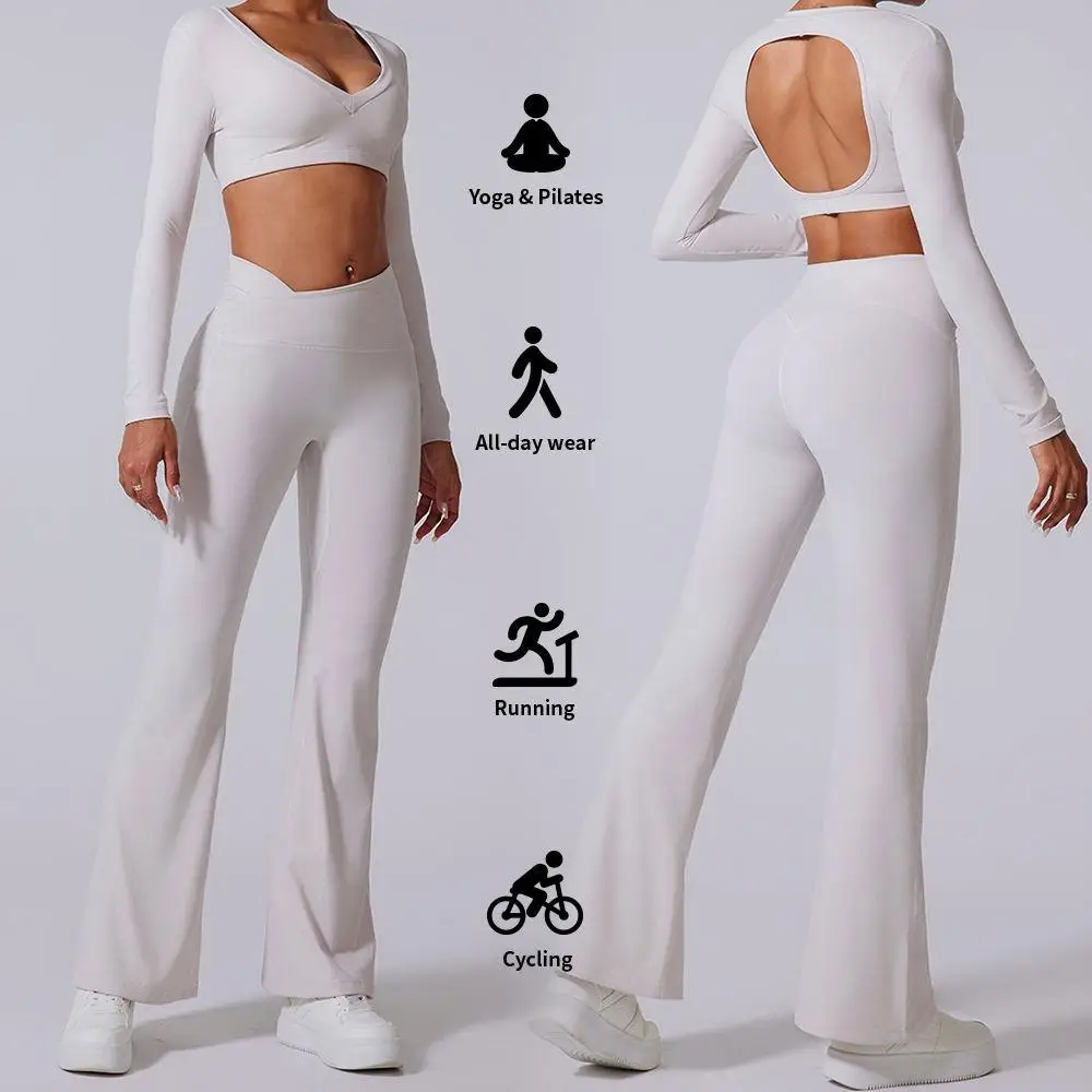 YISHENHON Recyclable Fabric Quick Dry Yoga V Waist Gym Leggings Running Workout Wide Leg Pants Flare Woman Sport Pants