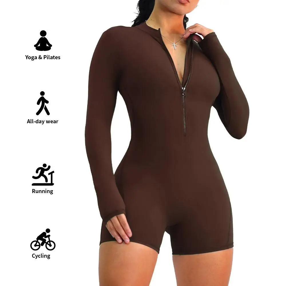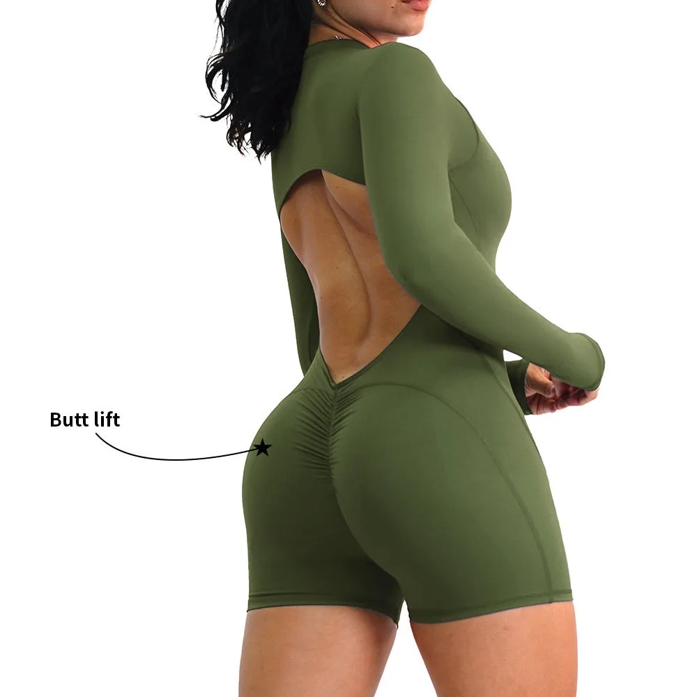 Custom Gym Clothing Quick Dry Long Sleeve Yoga Jumpsuit Women One Piece Backless Plus Size Sports Bodysuits Jumpsuits