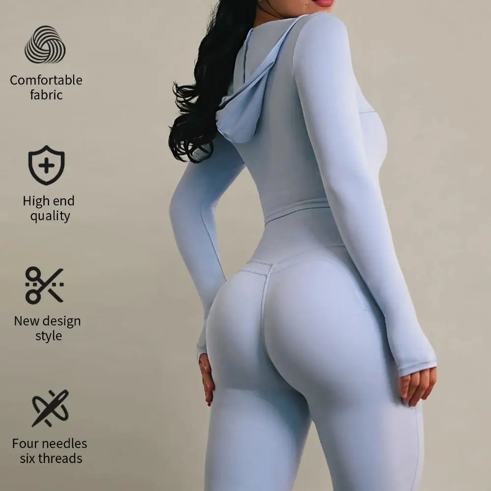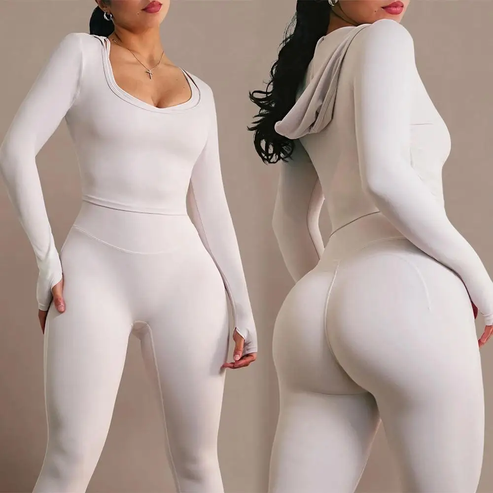 Fuyida Custom Fitness Clothes 2 Pieces Long Sleeve Sports Top High Waisted Leggings Workout Pants Women Gym Fitness Sets