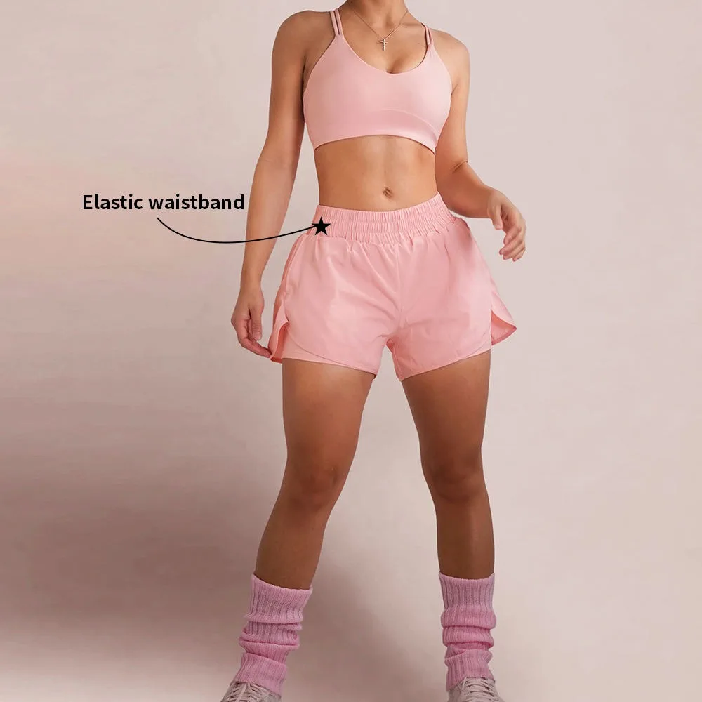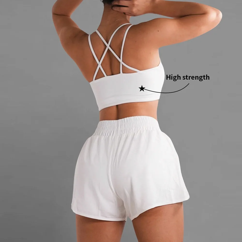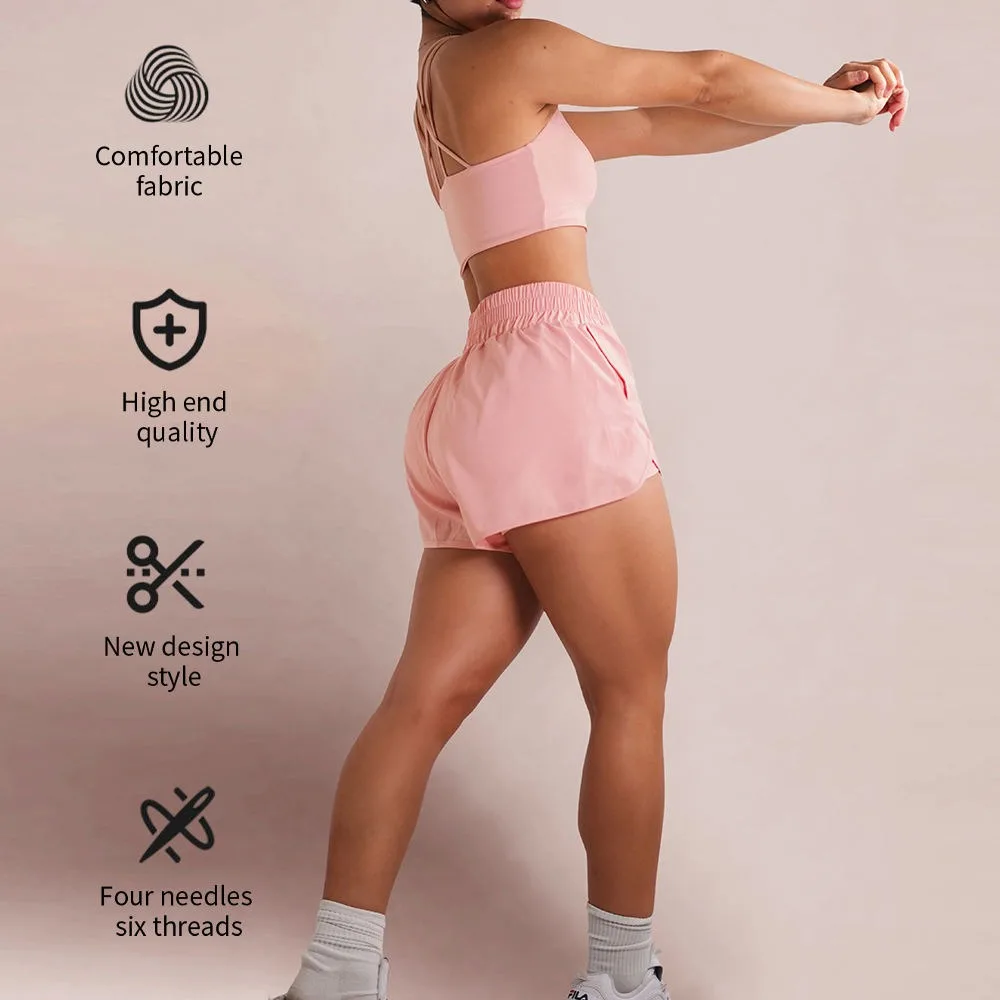 Custom Womens Workout Clothing Sets 2 Pieces Quick Dry Elastic Waist Shorts and Cross Sports Bra Yoga Gym Wear Tracksuits