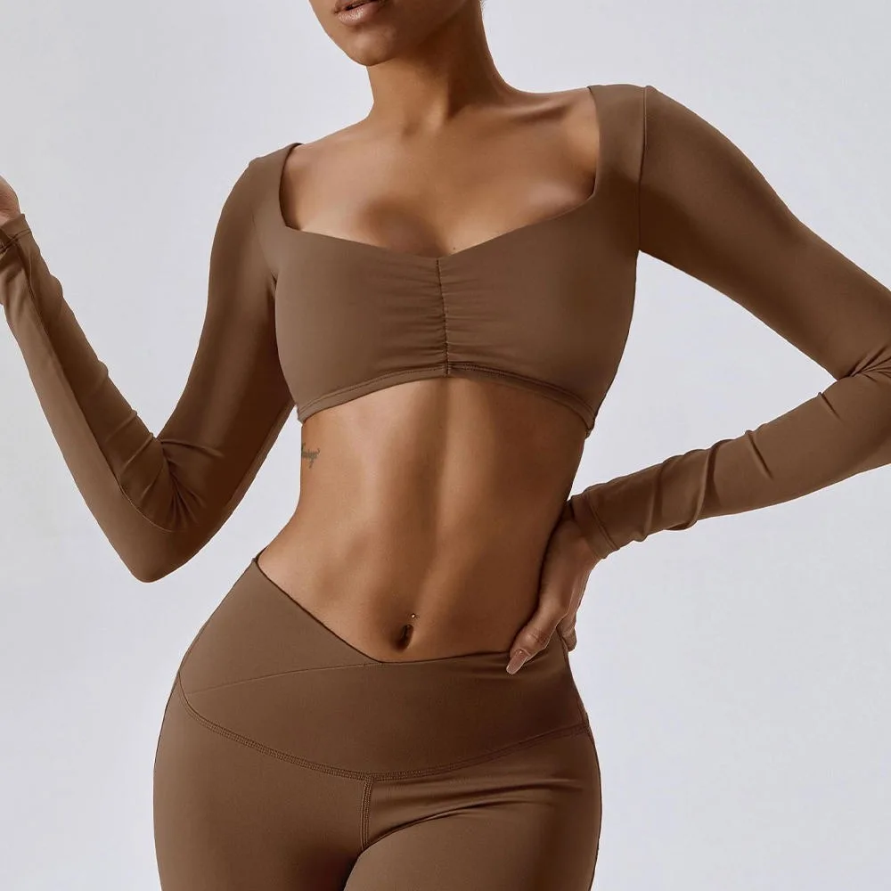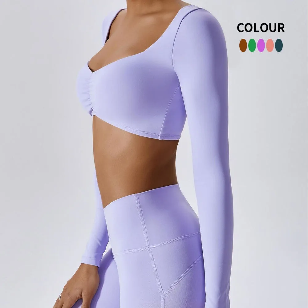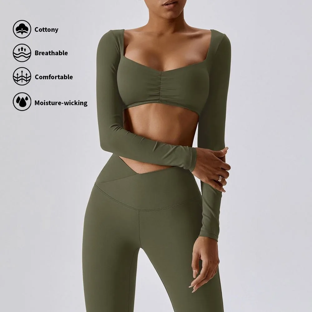 Custom Fitness Clothes Active Wear Ladies Long Sleeve Yoga Crop Top Set High Waist Yoga Leggings Set Women Gym Fitness Sets