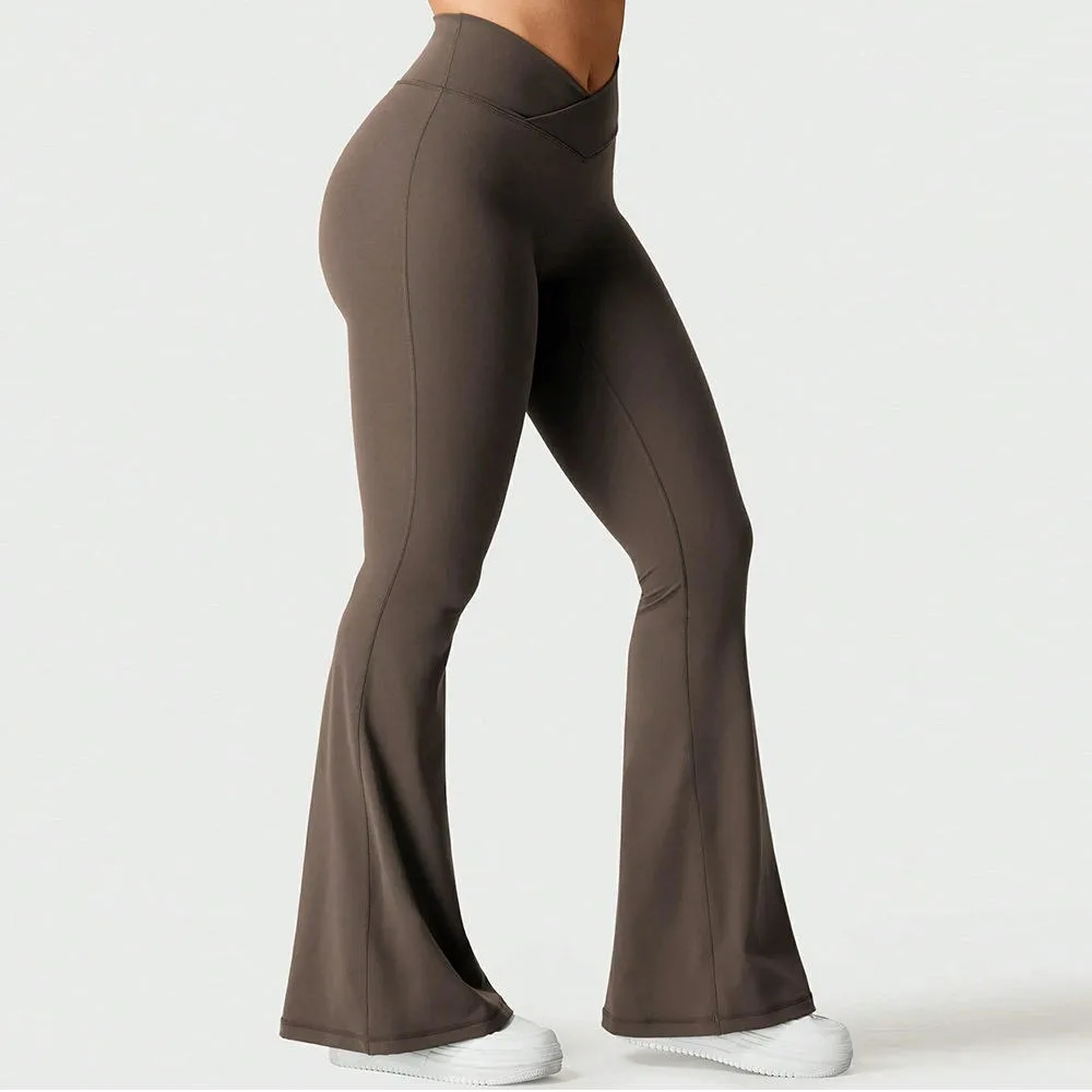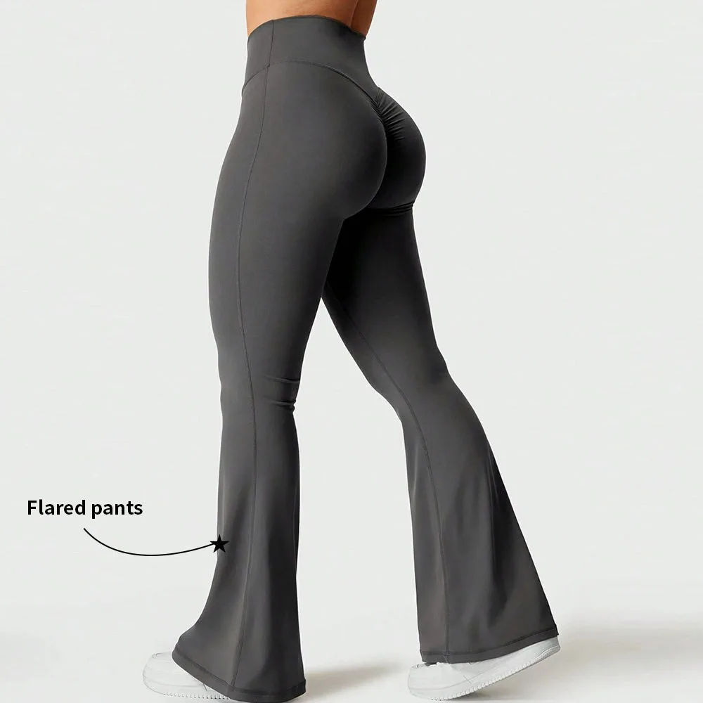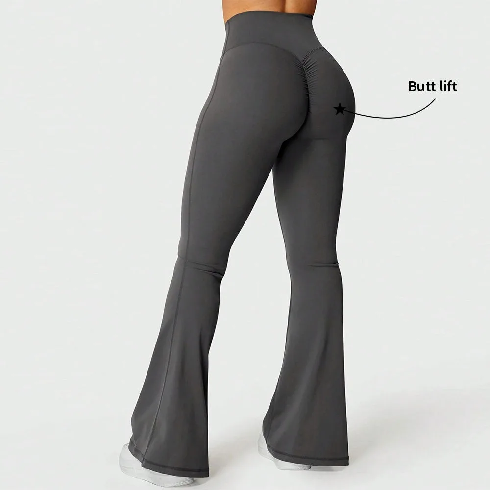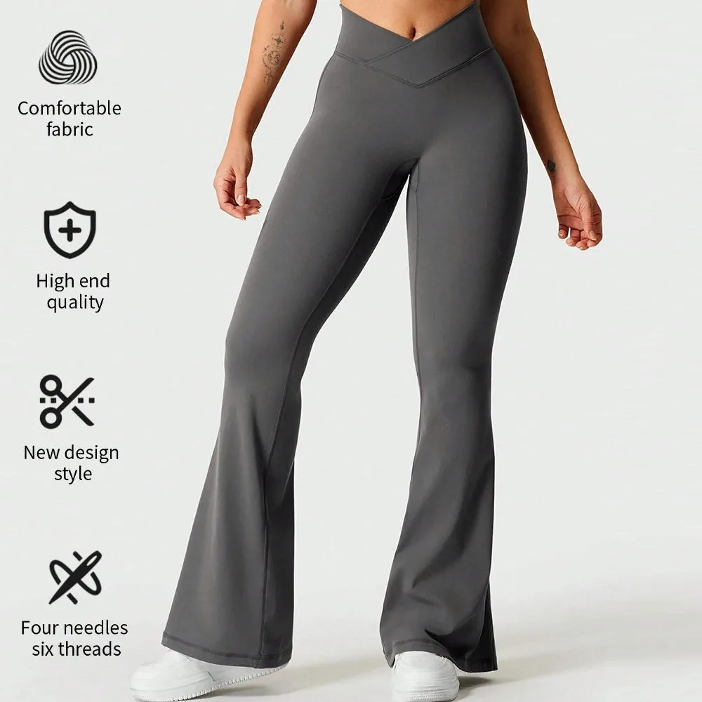 Custom Gym Wear Quick Dry High Waisted Yoga Pants Tummy Control V Shape Front Fitness Flare Scrunch Leggings for Women