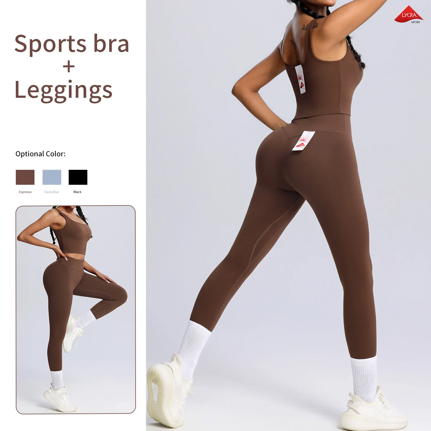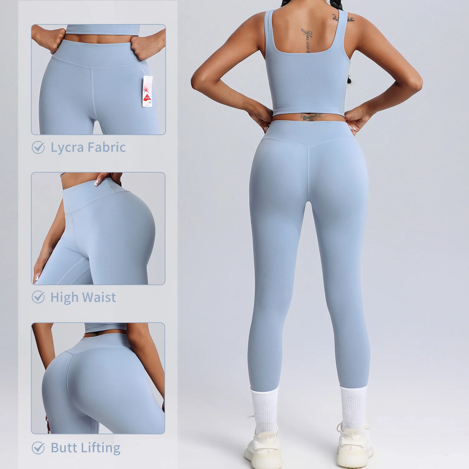 Comfortable Nylon/Lycra Sports Bra Match High Waist Leggings Two Piece Fitness Gym Sets Workout Active Wear Yoga Set for Women