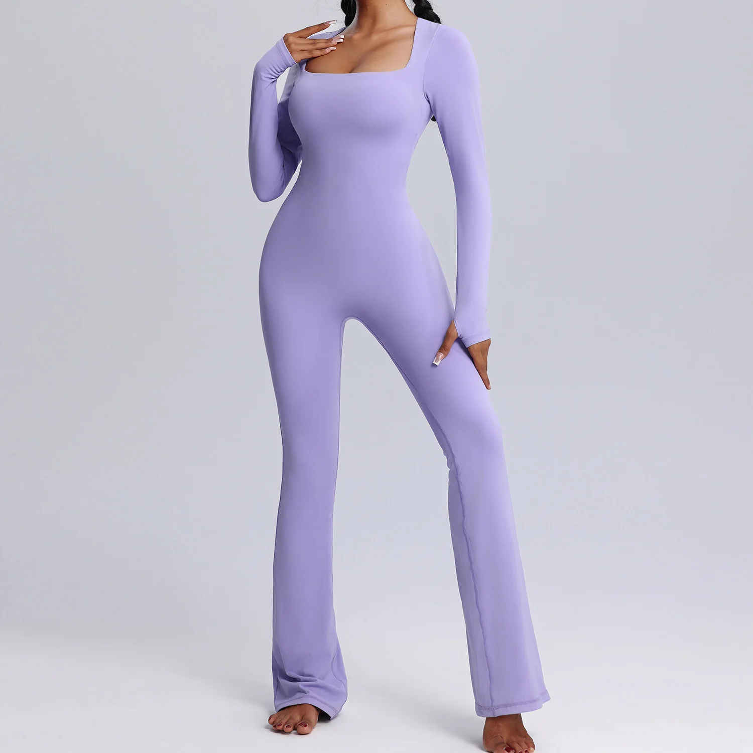 Factory Wholesale Fitness Rompers Sexy Workout Wear Bodysuit One Piece Jumpsuits Long Sleeve Square Neck Women Gym Yoga Jumpsuit