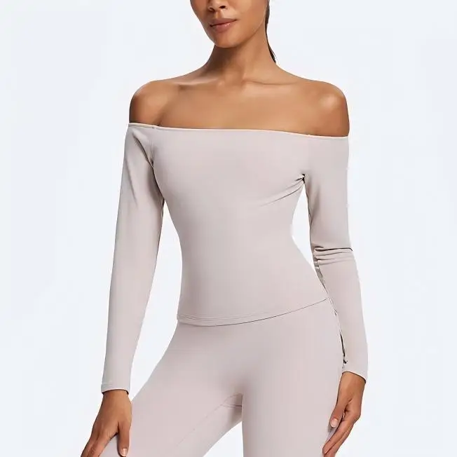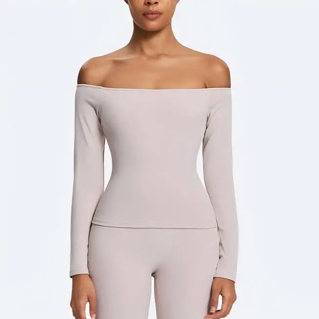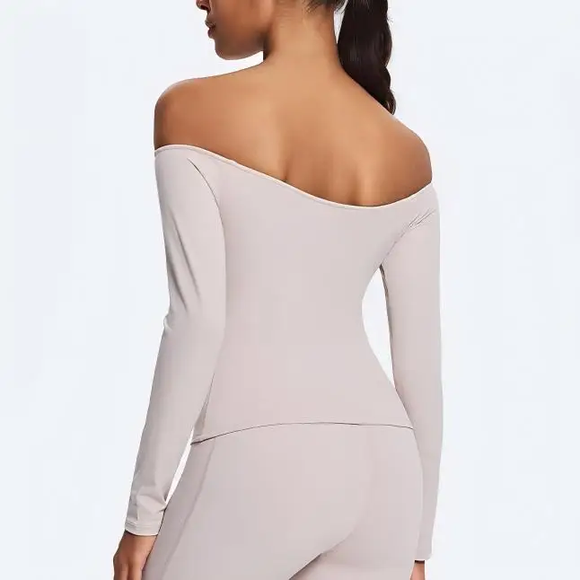 Custom High Quality Soft Lightweight Slim Fit Tight Shirts New Straight Off Shoulder Long Sleeve Quick-drying Running Yoga Top