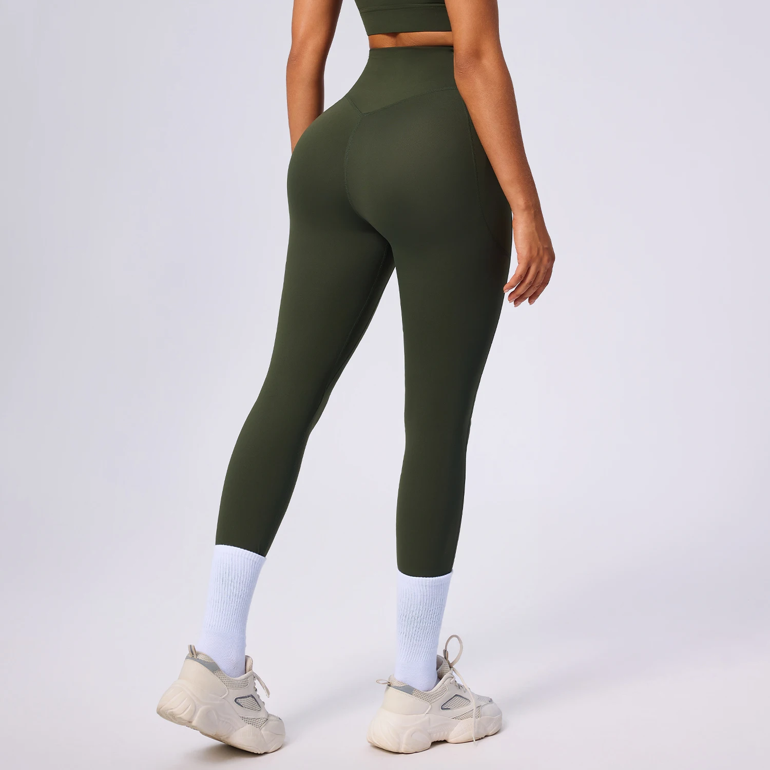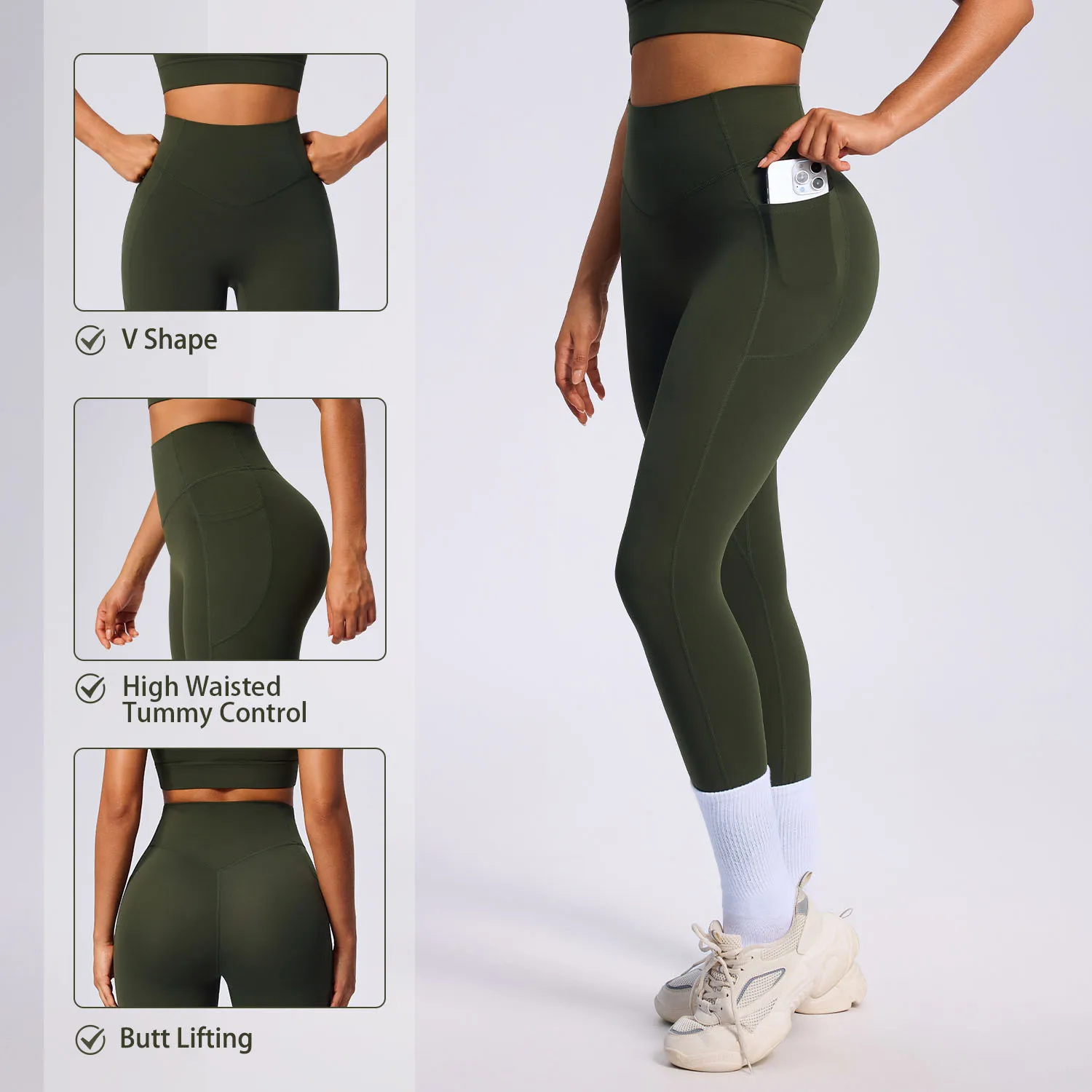 Fuyida High Waisted Spandex/Nylon Four-Way Stretch Ankle-Length Leggings with Pocket and V-Shape Front Butt Lifting for Women