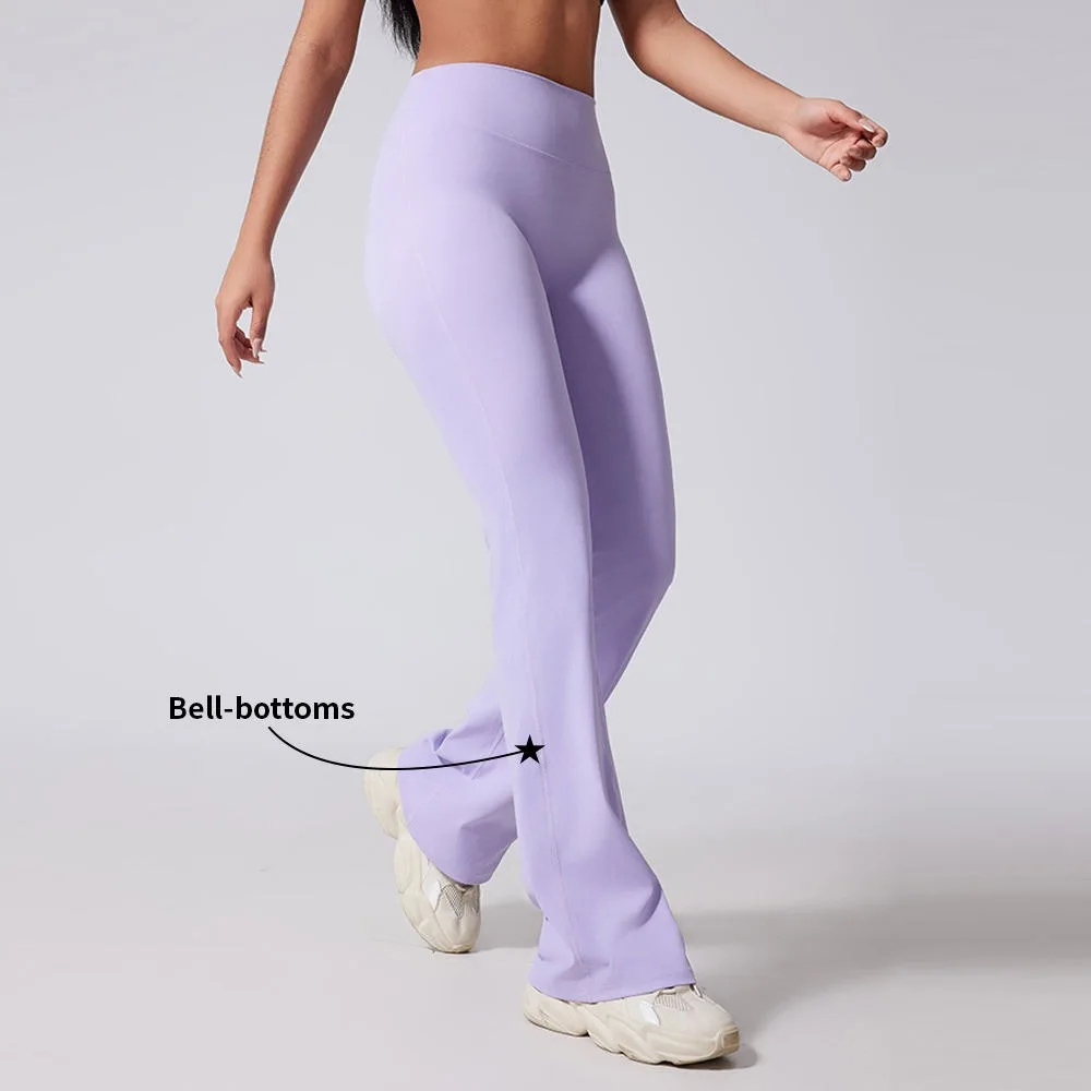 Custom High Waist Solid Fitness Flare Long Pants Women Bell-bottoms Spandex Leggings Wide Legs Sports Gym Yoga Butt Four-Way
