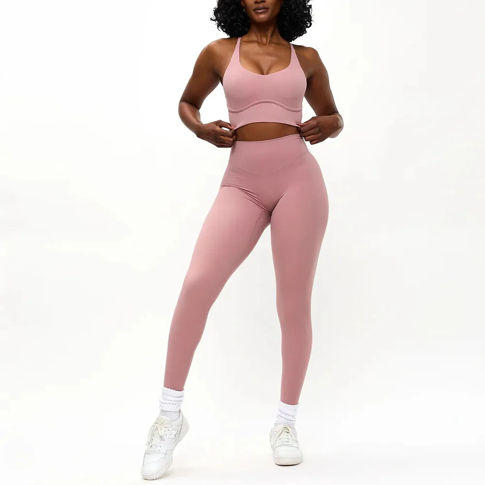 Custom Solid Quick Dry High Waist Yoga Pants Gym Wear Fitness Booty V Scrunch Hip Lift Workout Butt Leggings Women ODM Four-Way
