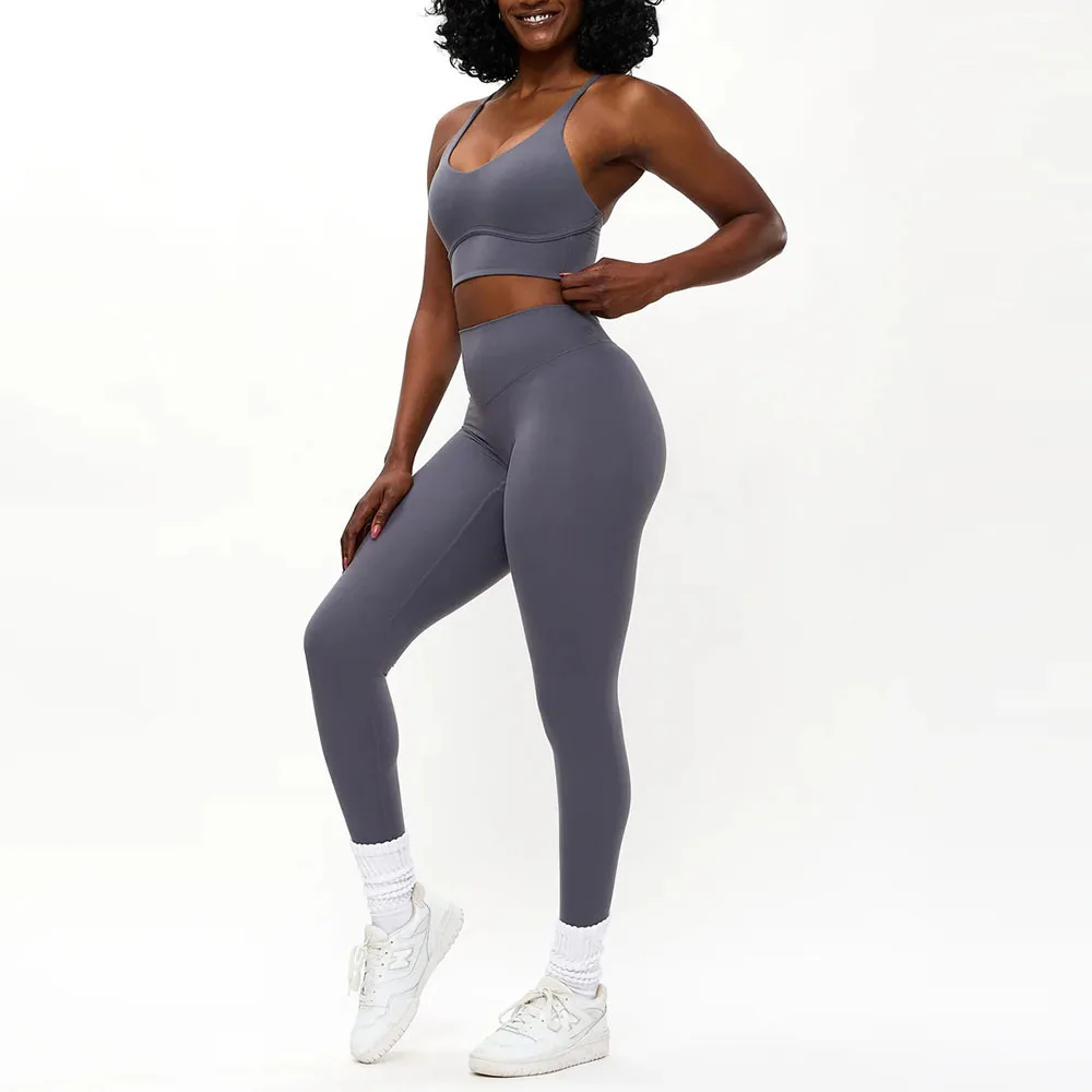 Custom Solid Spandex/Nylon Quick Dry High Waist Yoga Pants Gym Wear Fitness Booty V Scrunch Hip Lift Workout Butt Leggings Women