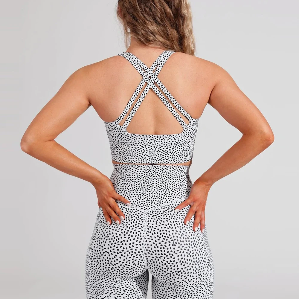 Women's 2-Piece Yoga Set Sports Bra & Leggings with Crisscross Straps V-Neck High Waist Quick-Dry Breathable Four-Way Stretch