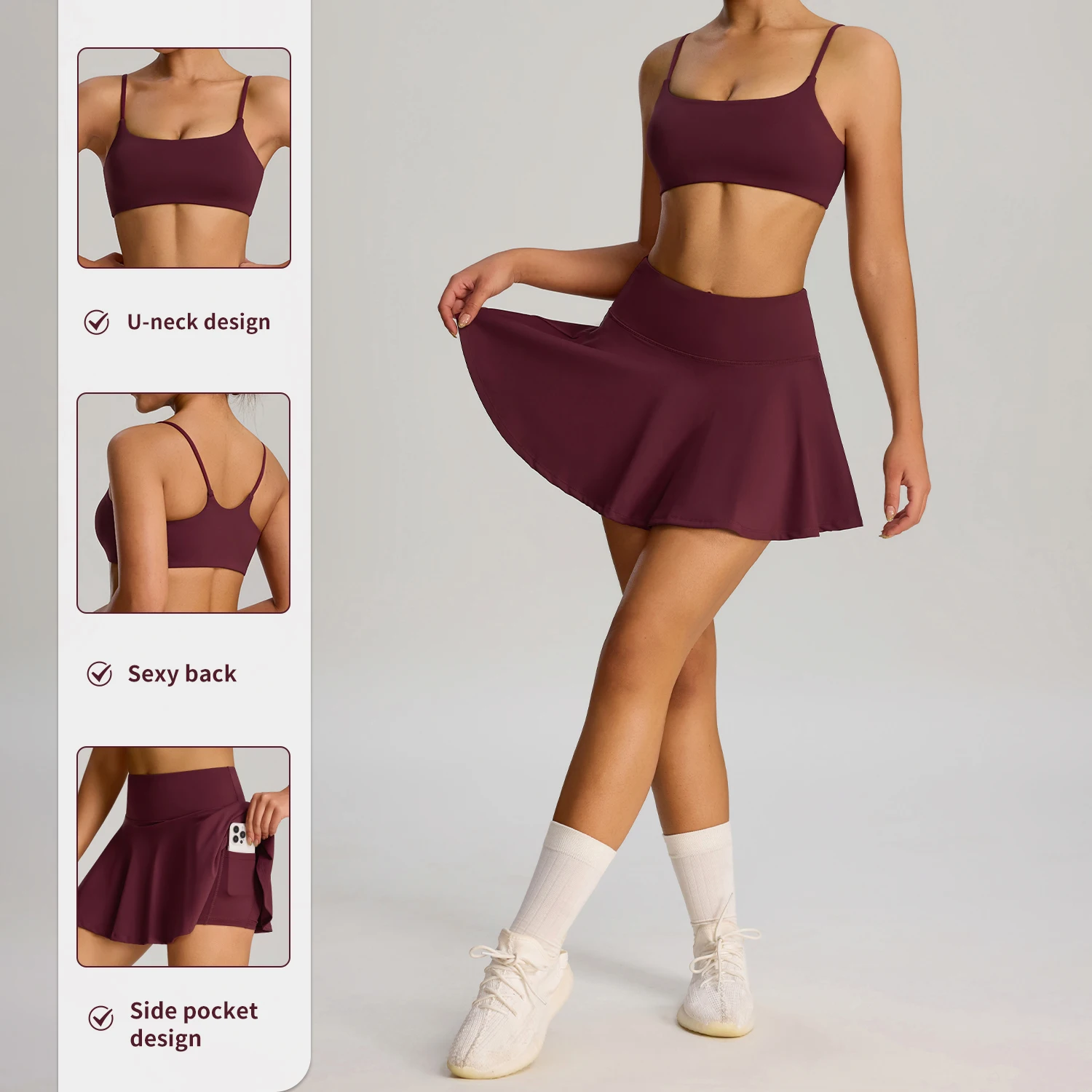 YISHENHON Women's A-Line Tennis Dress Hot Selling Wholesale Sportswear Runninng Suit with Elegant Tennis Skirt