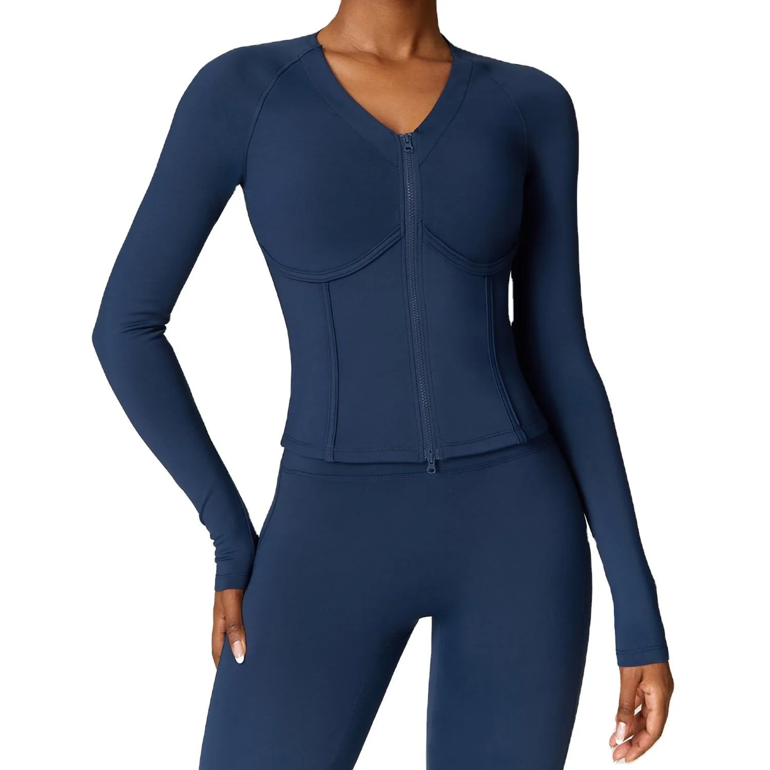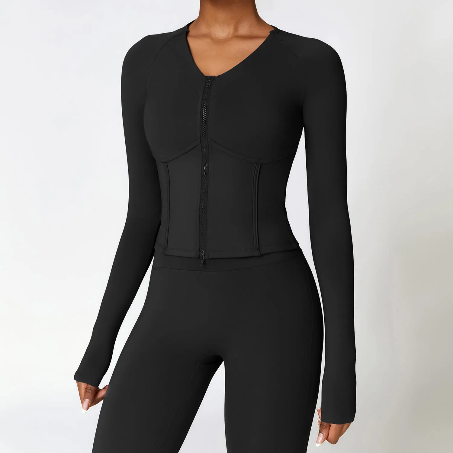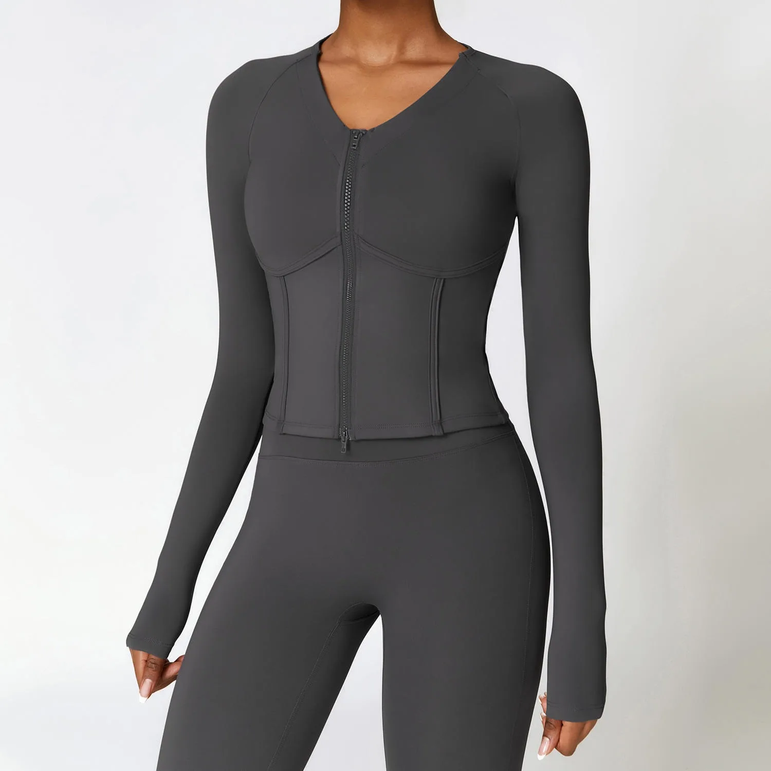 YISHENHON New Arrivals Quick-drying Women's Tight Running Sports Fitness Yoga Jacket Activewear Zip Long Sleeve Workout Crop Top