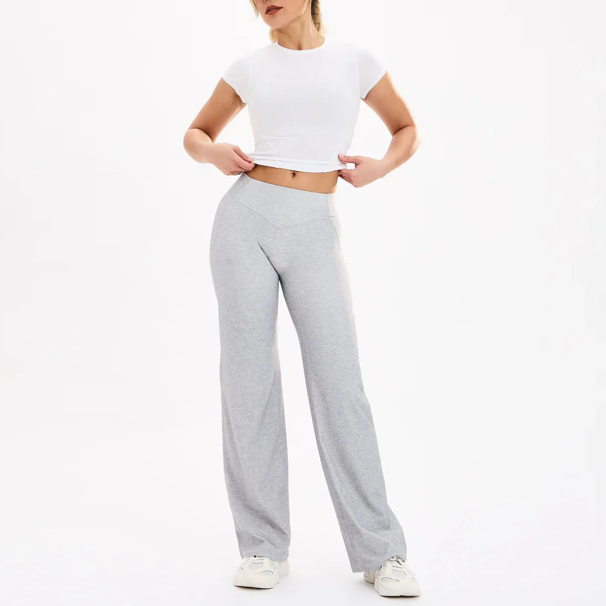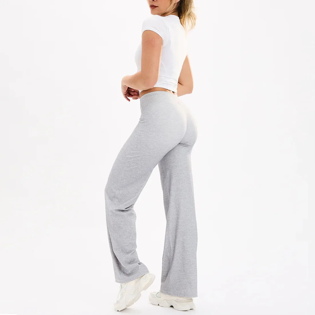 YISHENHON Recyclable Fabric Quick Dry Yoga V Waist Gym Leggings Running Workout Wide Leg Pants Flare Woman Sport Pants