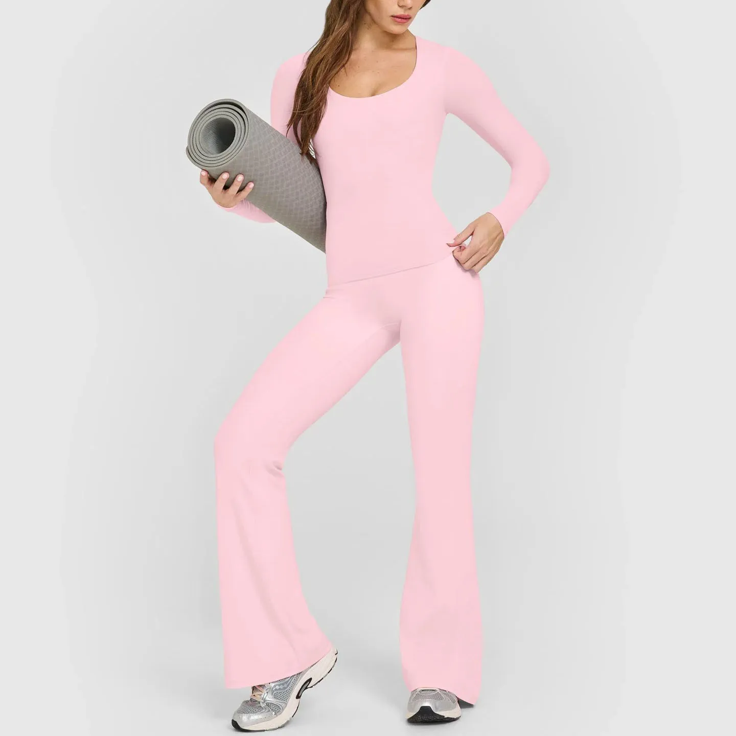 YISHENHON Recyclable Fabric Quick Dry Yoga V Waist Gym Leggings Running Workout Wide Leg Pants Flare Woman Sport Pants