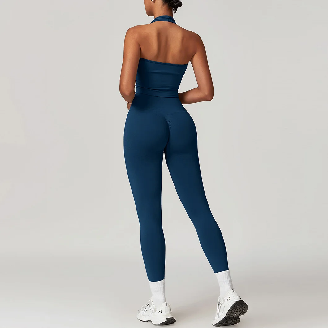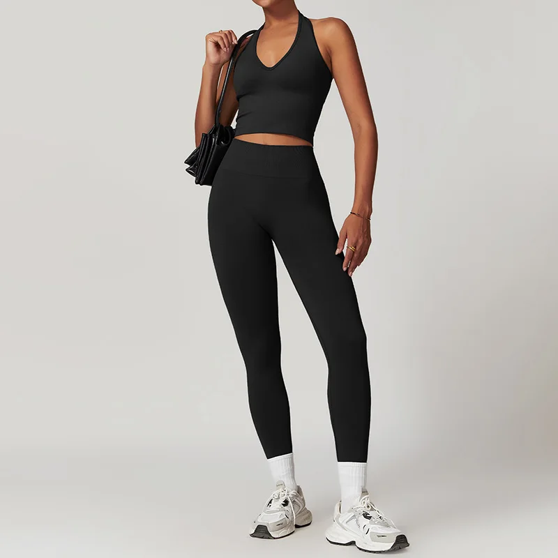 Women's Yoga Suit 2-Piece Set Halter Neck Deep V Stretch Sports Bra & High Waist Leggings Spandex/Nylon Breathable Yoga Sets