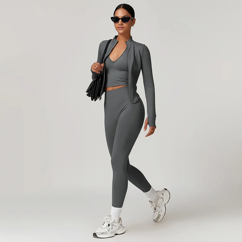 YISHENHON New Arrivals Quick-drying Women's Tight Running Sports Fitness Yoga Jacket Activewear Zip Long Sleeve Workout Crop Top
