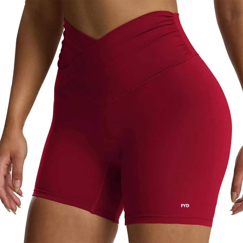 Fuyida Custom Workout Biker Shorts Women Cross-Waist Tummy Control High Waisted Ruched Spandex/Nylon Yoga Short Four-Way XS