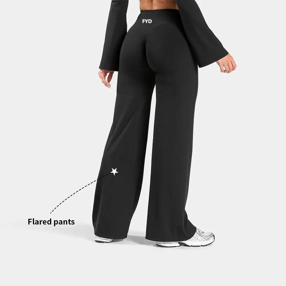 YISHENHON Recyclable Fabric Quick Dry Yoga V Waist Gym Leggings Running Workout Wide Leg Pants Flare Woman Sport Pants