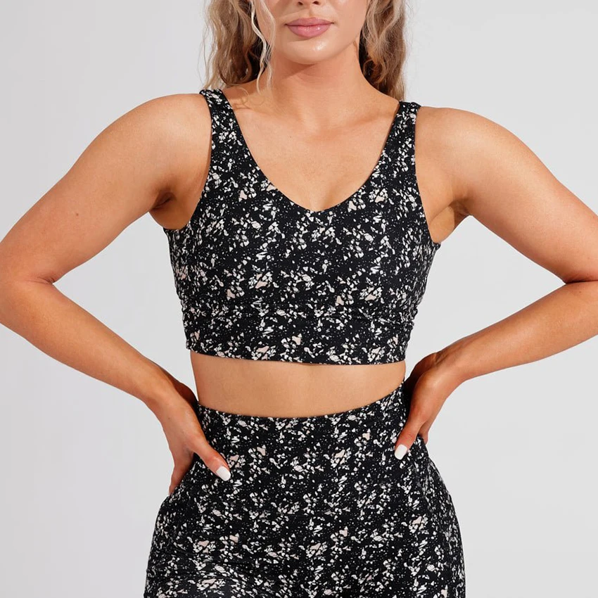 Wholesale Custom Lightweight High Support Halter Backless Quick Dry Printed Yoga Sports Bra with Front Logo for Women