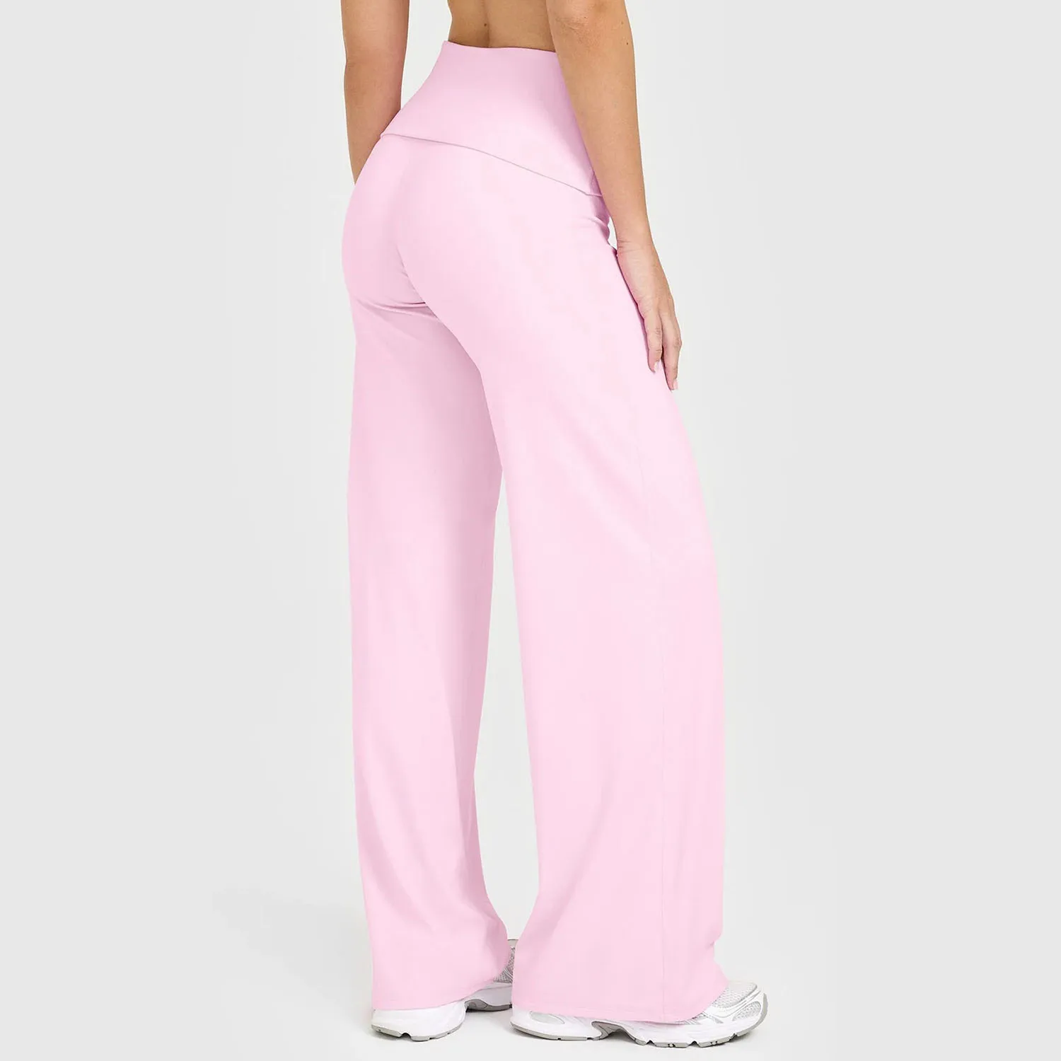 Wholesale High Fold Over Waist Solid Spandex/Nylon Straight Leg Women Yoga Pants Super Stretch Custom Activewear Manufacturer