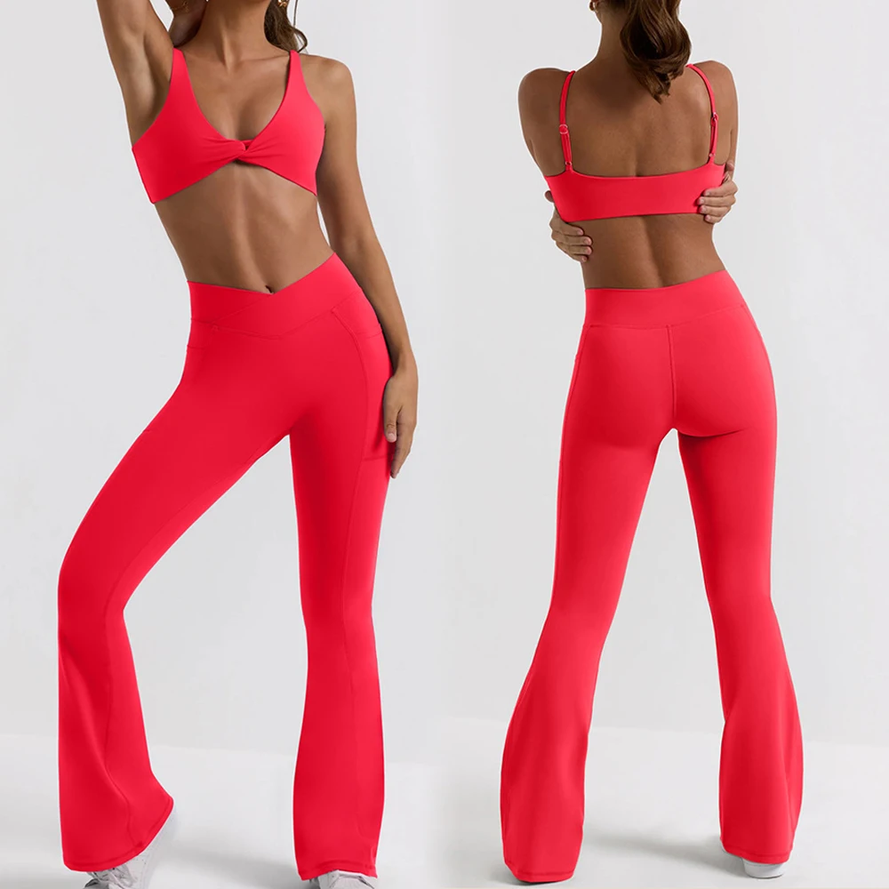 YISHENHON Recyclable Fabric Quick Dry Yoga V Waist Gym Leggings Running Workout Wide Leg Pants Flare Woman Sport Pants