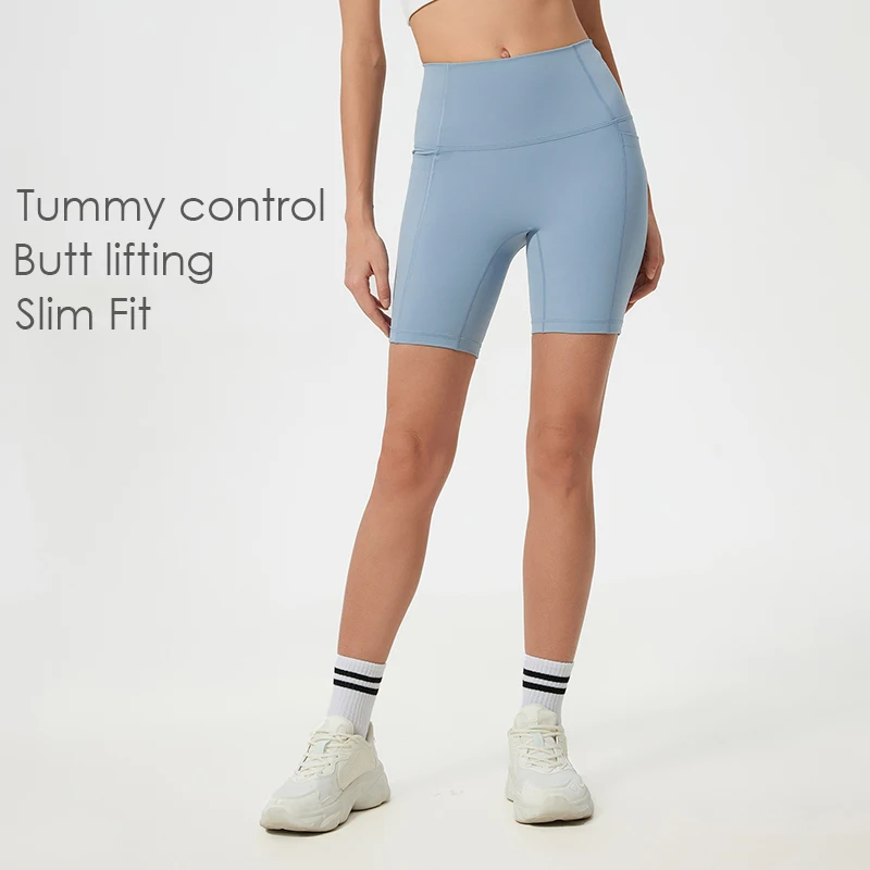 Pocket Design Gym Workout High Waist Sports Fitness Yoga Shorts No Camel Toe Running Clothes Custom Biker Shorts Women