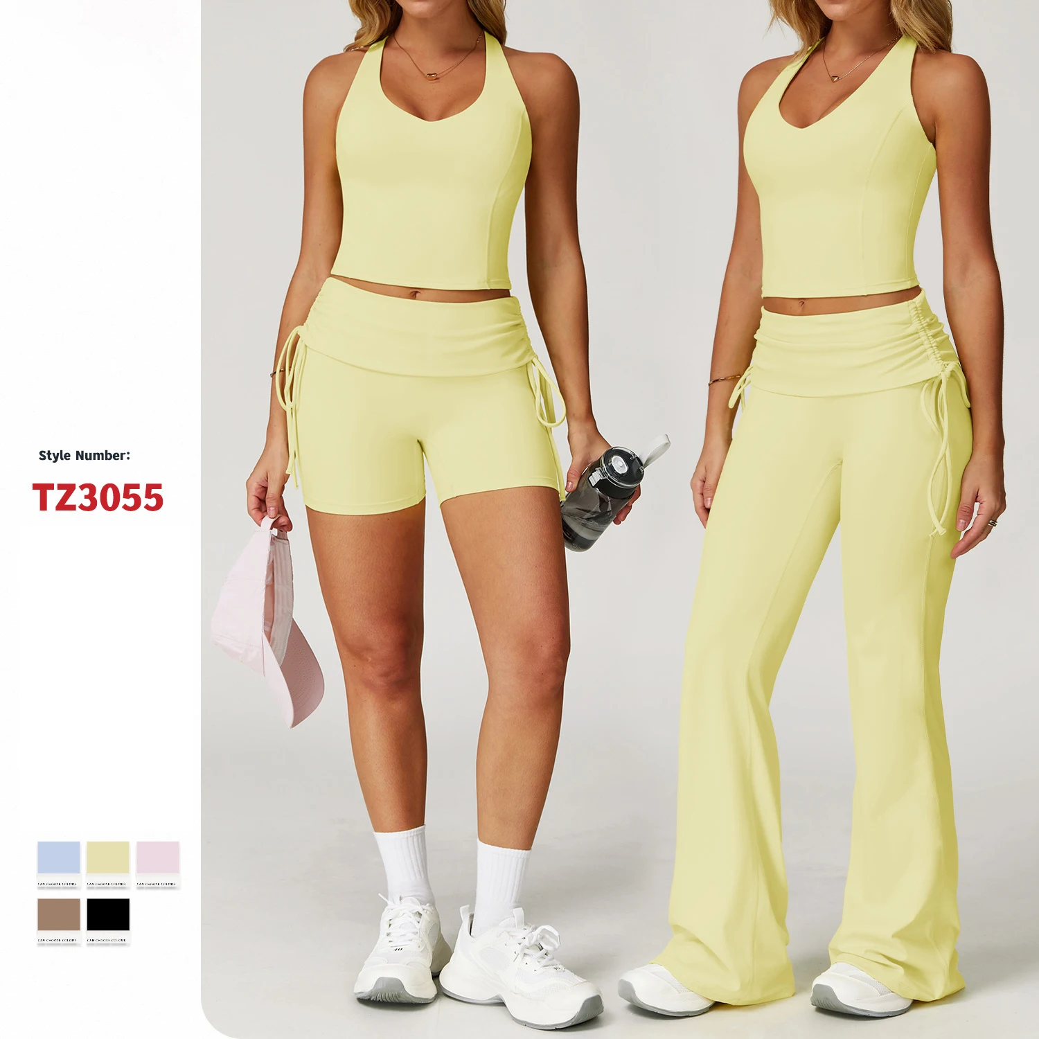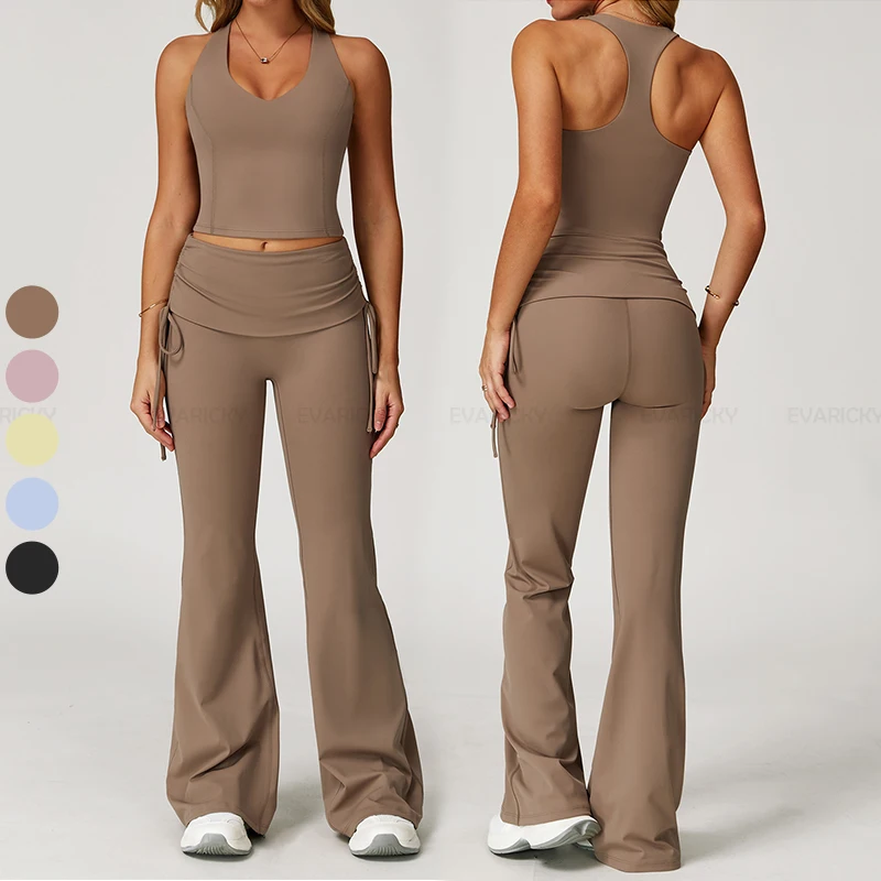 YISHENHON Recyclable Fabric Quick Dry Yoga V Waist Gym Leggings Running Workout Wide Leg Pants Flare Woman Sport Pants