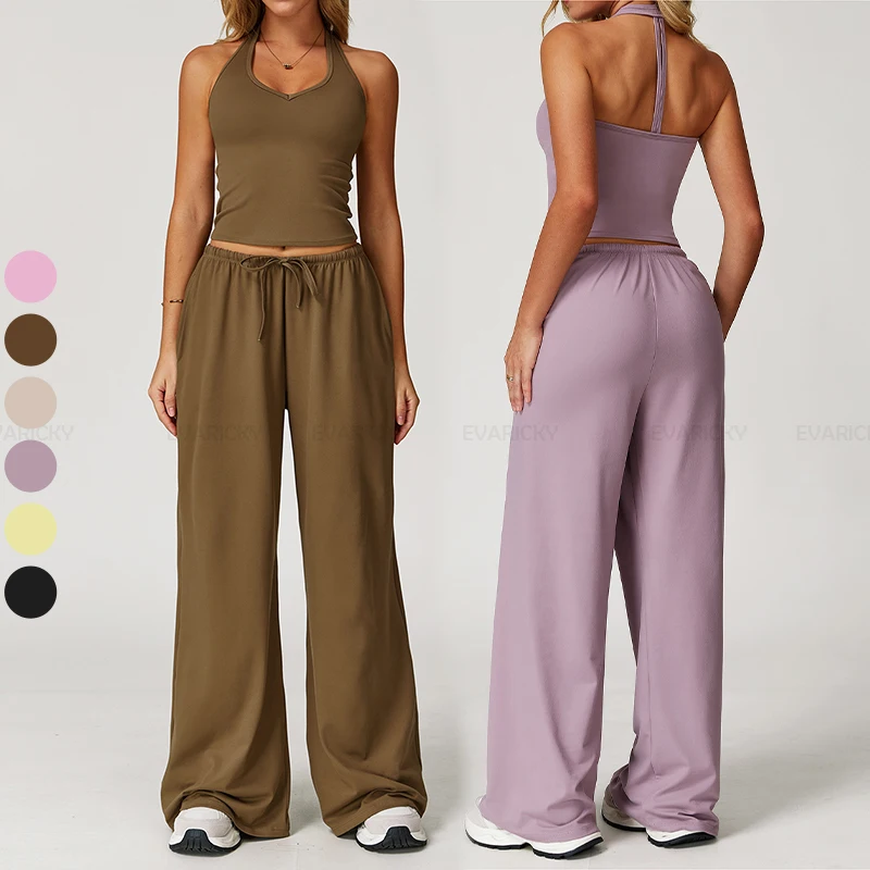 2026 Custom Women's Sports Suit Breathable Gym Workout Fitness Yoga Clothing Elastic Waist Solid New Custom Activewear