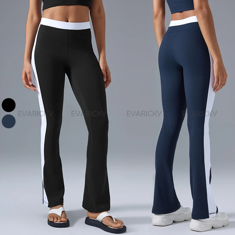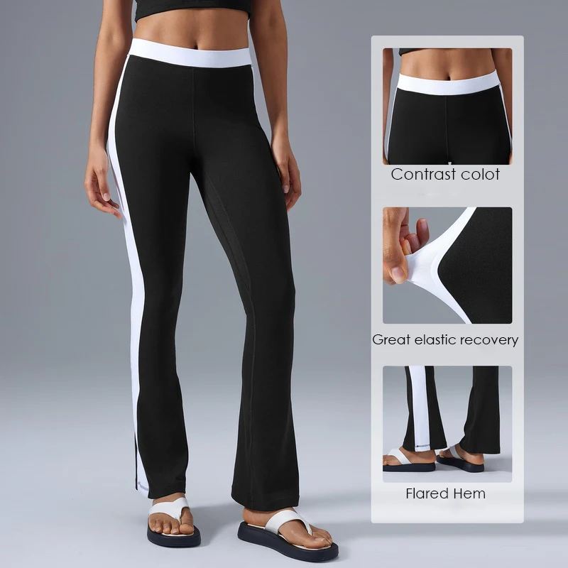 Women's Fashion Casual Tummy Control Gym Workout Flare Leggings Wholesale Contrast Color Ladies Exercise Wide Leg Sports Pants