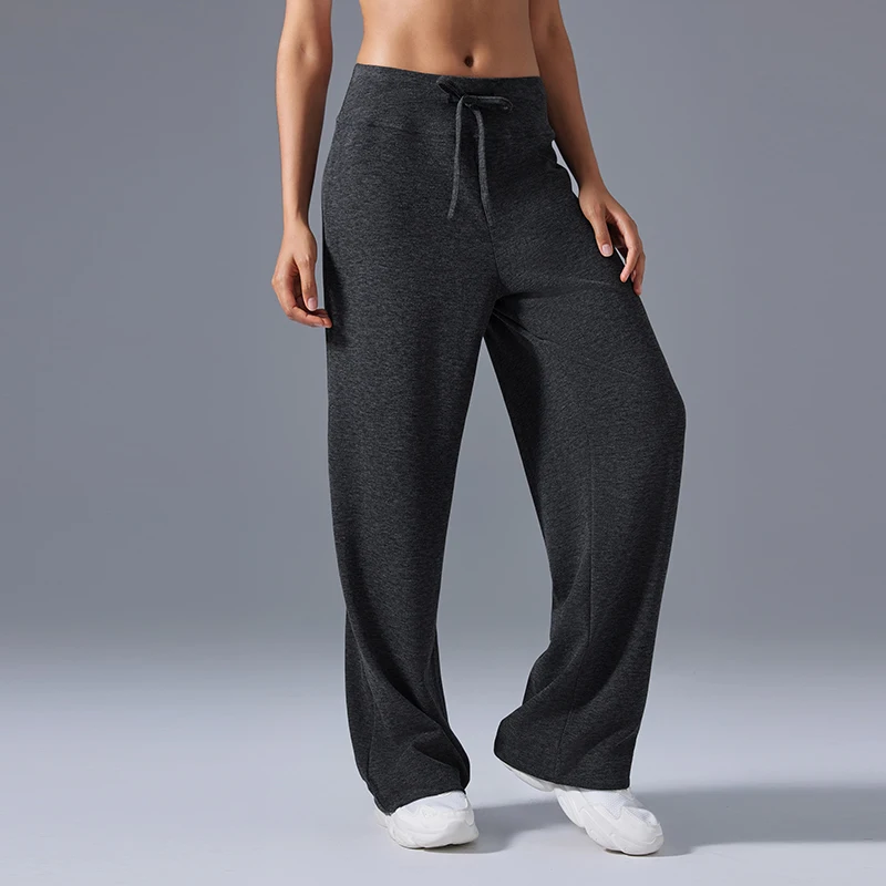 Wholesale Ladies Casual Joggers Sweatpants Athletic Yoga Pants with Drawstring Design Solid Color Wide Leg and Side Pockets