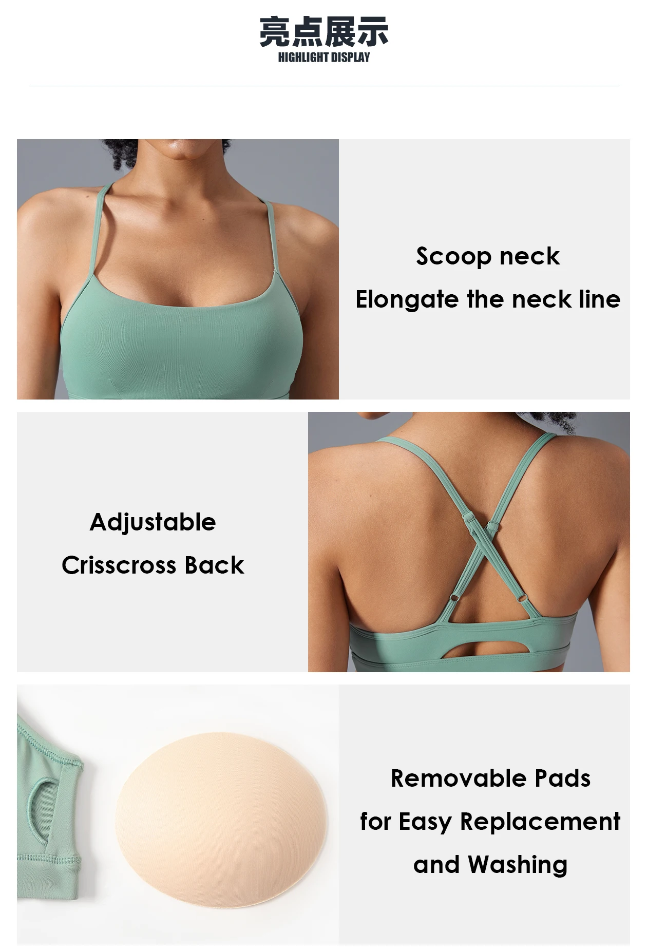 Women's Simple Style Breathable Fitness Crop Top Yoga & Running Sports Bra with Removable Pads