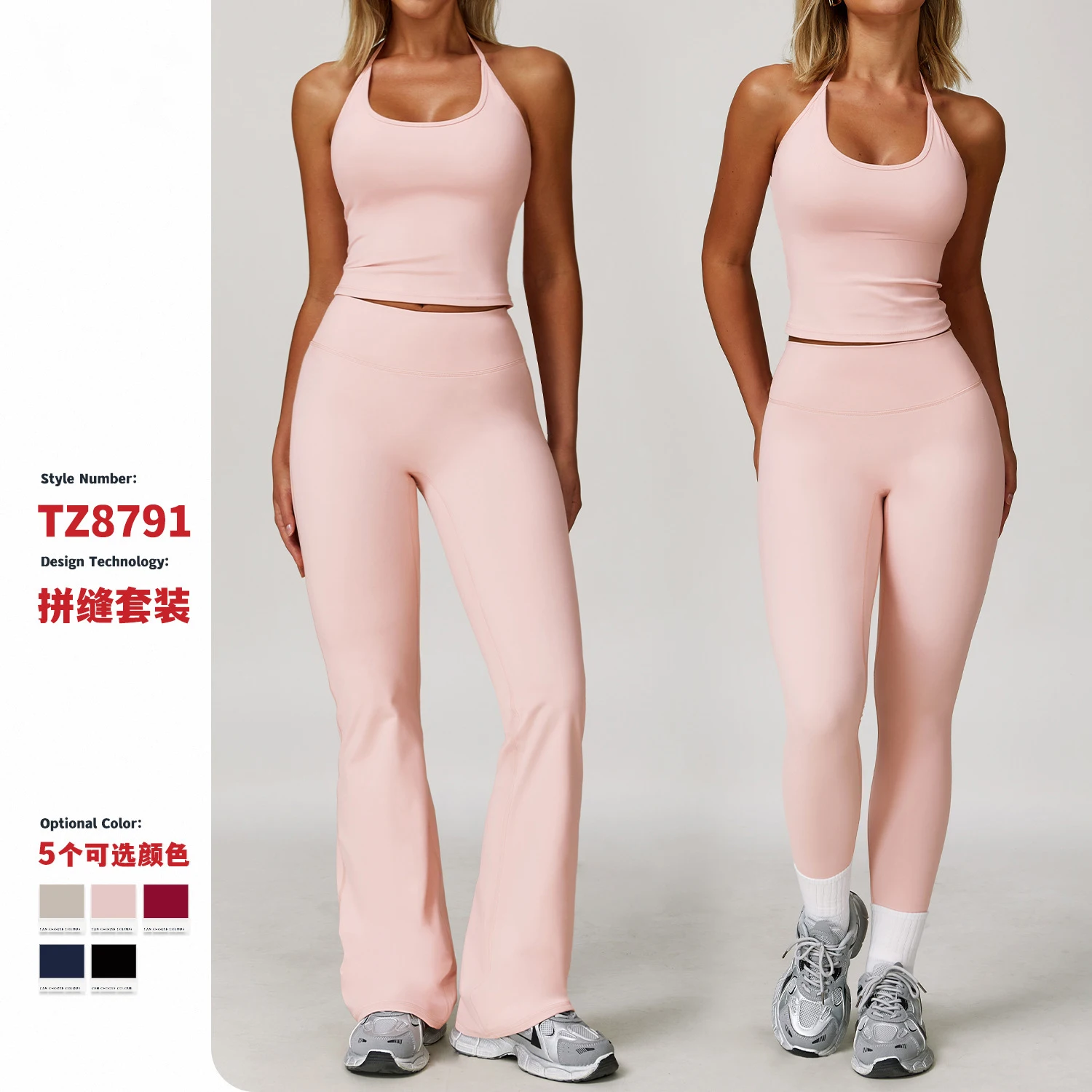 OEM Women's Sportswear High Waist Yoga Sets Halter Adjustable Neck Workout Tank Crop Top Elastic Waist Butt Lifting Leggings