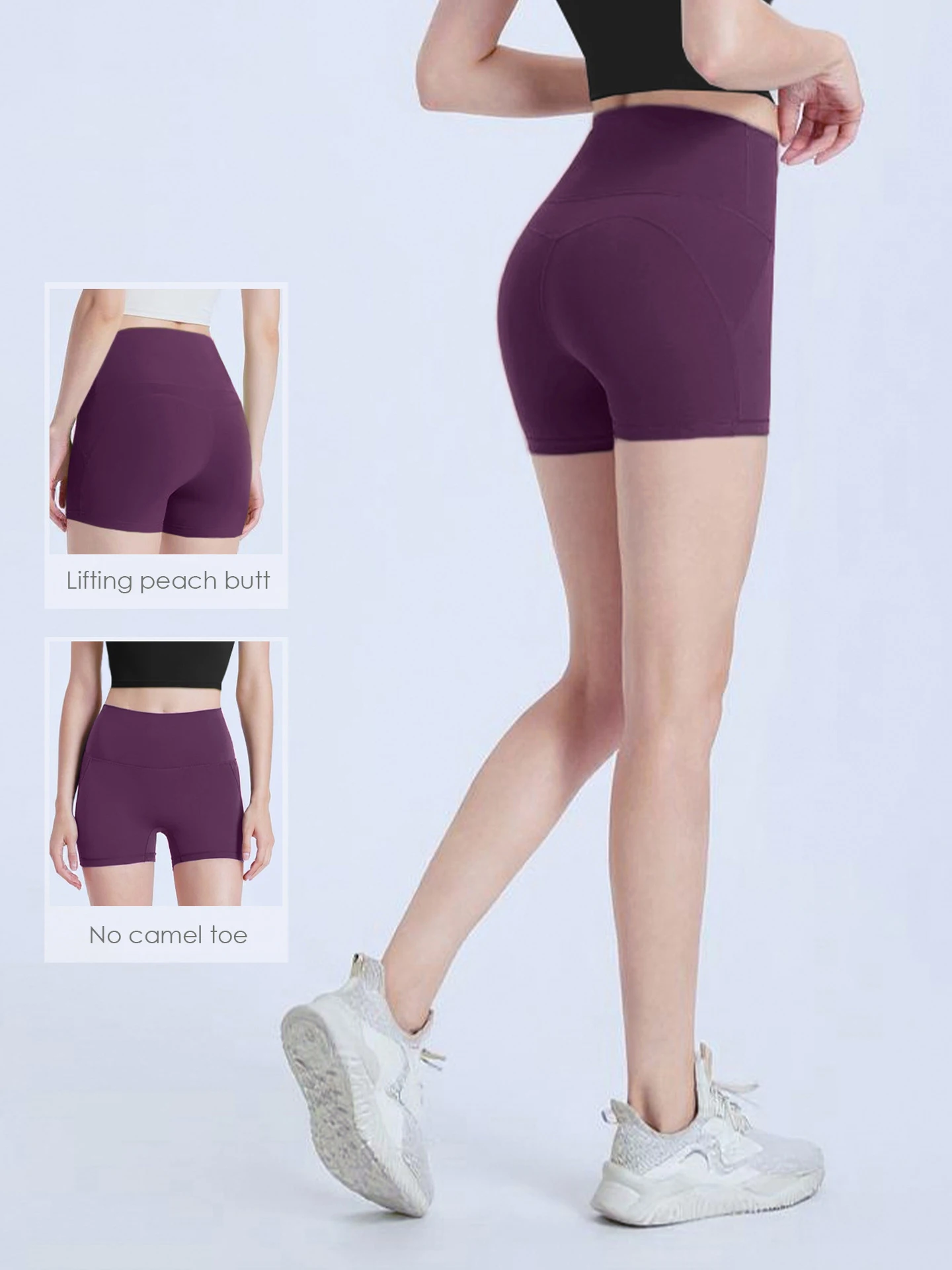 Ladies High Waist Workout Yoga Shorts Fashionable No Camel Toe Sport Fitness Gym Biker Shorts with Elastic Waist Solid Pattern