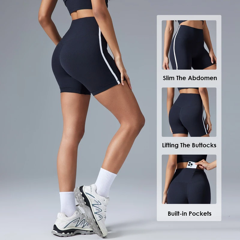 Women's Breathable High-Waisted Yoga Shorts Hip-Lifting Patchwork Style Comfortable Fitness Shorts with Hidden Pocket Logo Waist
