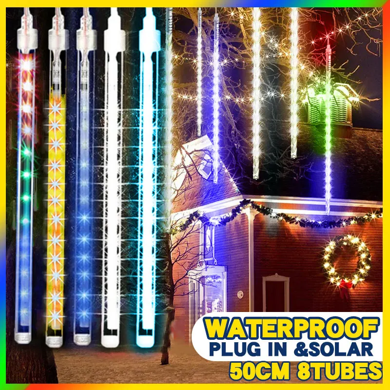 Vertak 30cm/45cm Waterproof Tubes Meteor Lights Colorful Meteor Shower Led Lights for Christmas Wedding Trees Garden