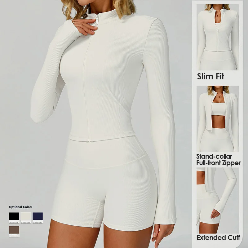 YISHENHON New Arrivals Quick-drying Women's Tight Running Sports Fitness Yoga Jacket Activewear Zip Long Sleeve Workout Crop Top