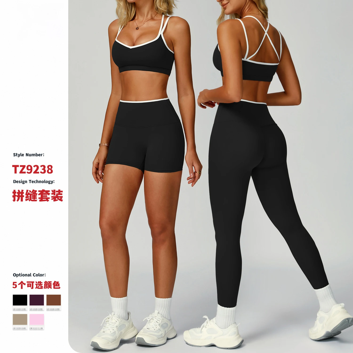 Women White Line Trim Contrast Color 2 Pieces Sport Wear Yoga Clothes Workout Set Gym Running Fitness Yoga Sets Custom Logo