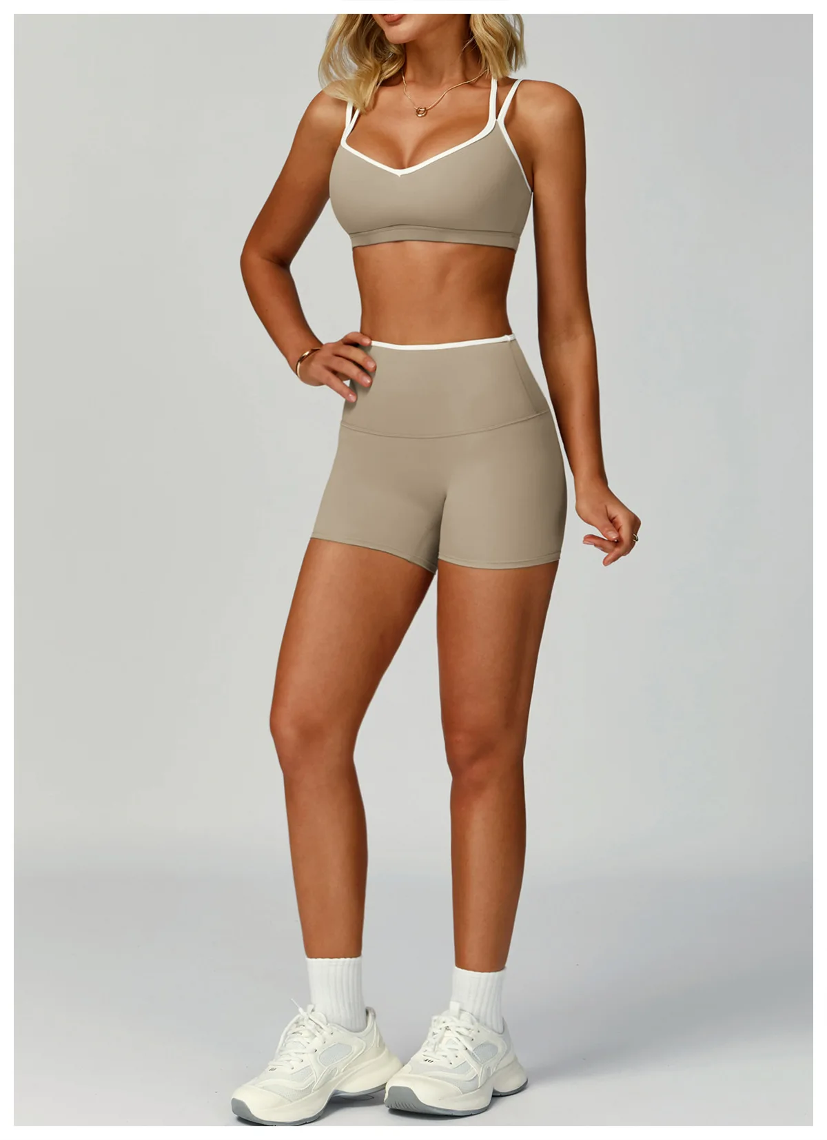 High Quality Women's Solid Yoga Active Wear 2-Piece Set with High Elastic Waist Breathable & Quick Dry for Gym Fitness
