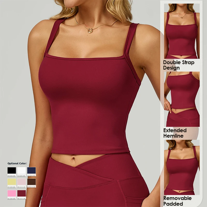Wholesale Comfortable Style Shockproof Body Tight Quick Dry Sports Bra Running Workout Square Collar Yoga Tank Top for Women