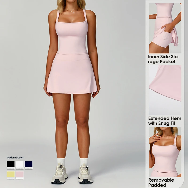 YISHENHON Women's A-Line Tennis Dress Hot Selling Wholesale Sportswear Runninng Suit with Elegant Tennis Skirt