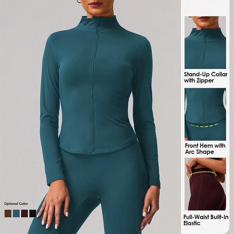 YISHENHON New Arrivals Quick-drying Women's Tight Running Sports Fitness Yoga Jacket Activewear Zip Long Sleeve Workout Crop Top