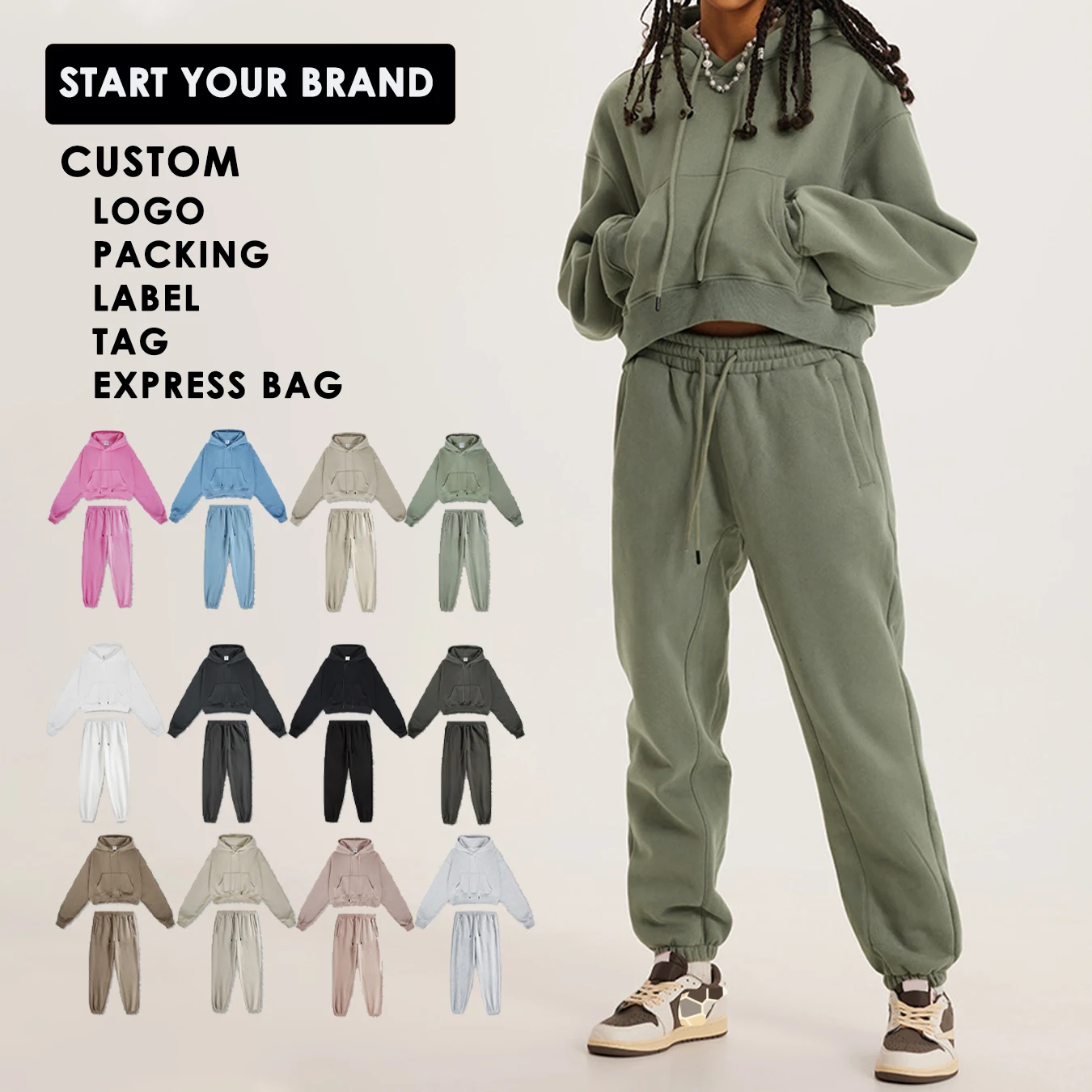 YISHENHON Hooded and Pants Custom Design Unisex Crewneck Sweatshirt Men Wholesale High Quality French Terry Two Piece 445 Grams