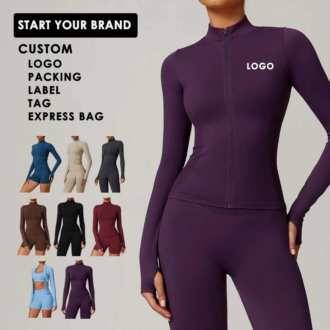 YISHENHON Custom Logo Slim Workout Top Yoga Jackets Zipper Womens Tight Quick Dry Long Sleeve Yoga Sports Coat With a Hat