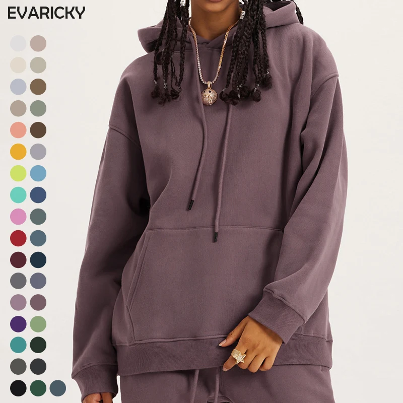 Unisex Hoodies 345gsm High Quality Oversized Sportswear Solid Color 42% Cotton Heavyweight Men Sweater Hooded Casual Hoodies