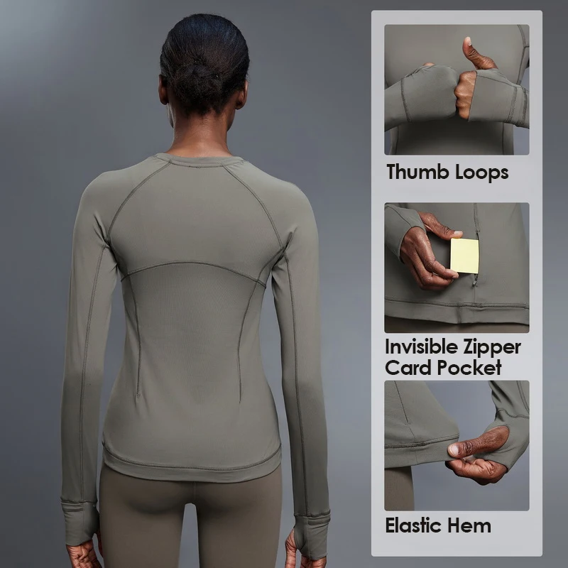 YISHENHON New Arrivals Quick-drying Women's Tight Running Sports Fitness Yoga Jacket Activewear Zip Long Sleeve Workout Crop Top