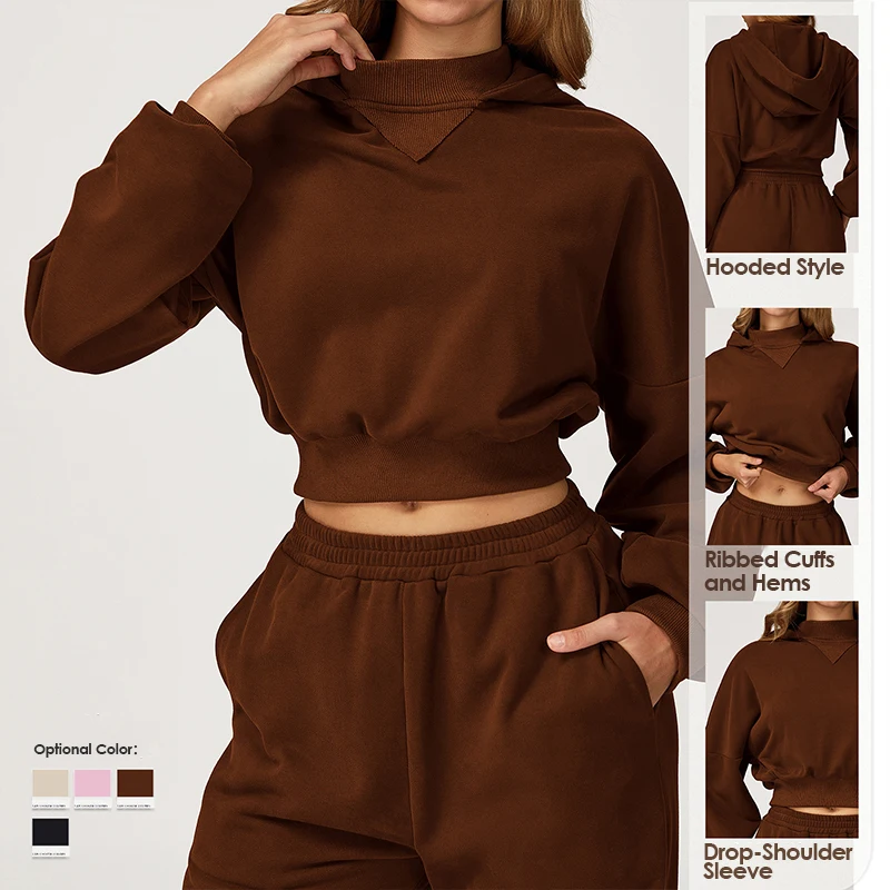 Long Sleeve Crop Top Cotton Athleisure Cropped Top Hooded Women's Sports Quality Pullovers Casual Gym Sweatshirts Hoodies