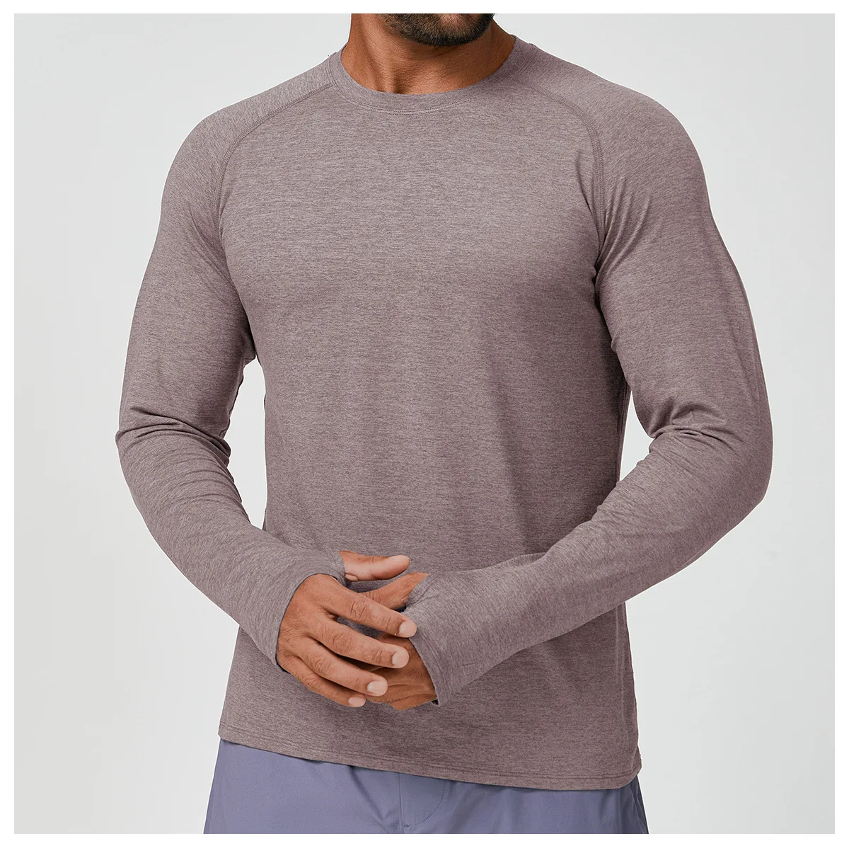 Wholesale Round Neck Gym Wear Sport Clothes Men Streetwear Long Sleeves Gym Workout Running T-shirt for Men with Thumb Cuff