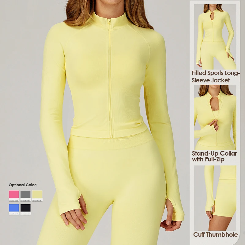 YISHENHON New Arrivals Quick-drying Women's Tight Running Sports Fitness Yoga Jacket Activewear Zip Long Sleeve Workout Crop Top